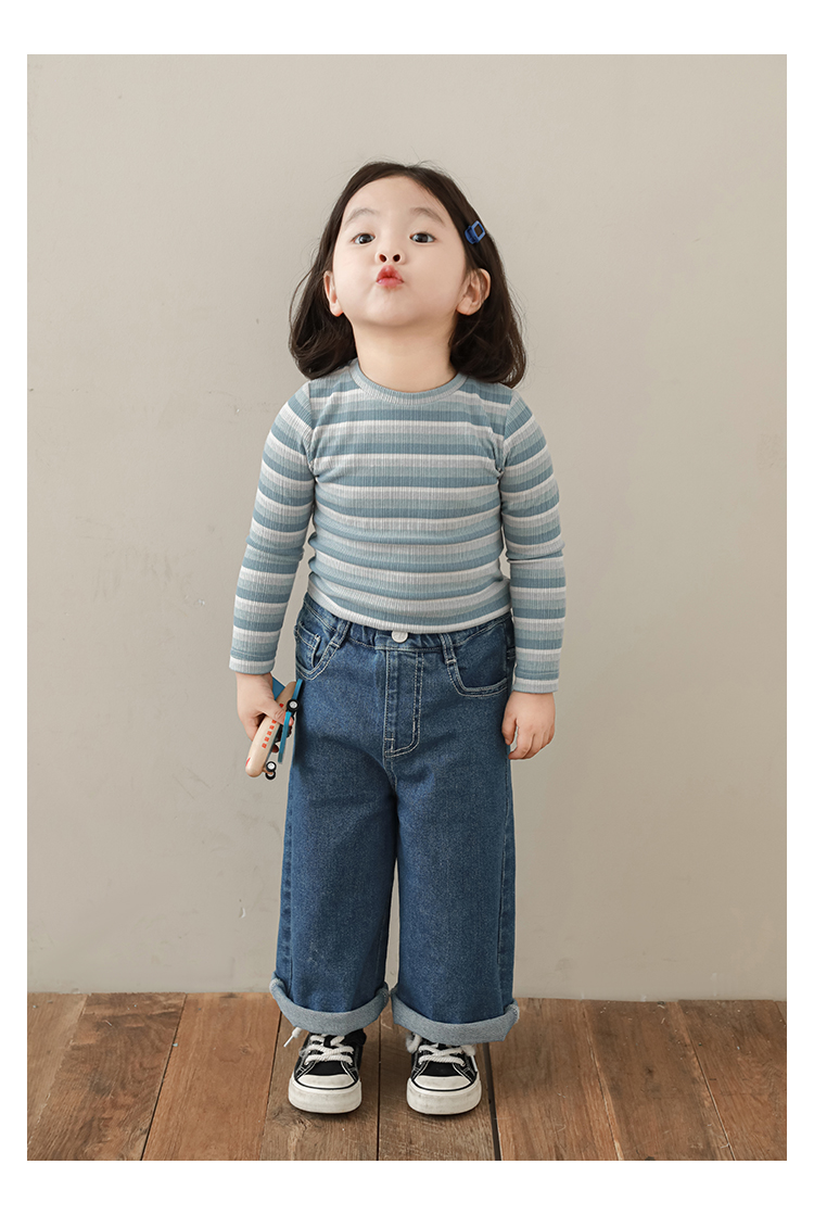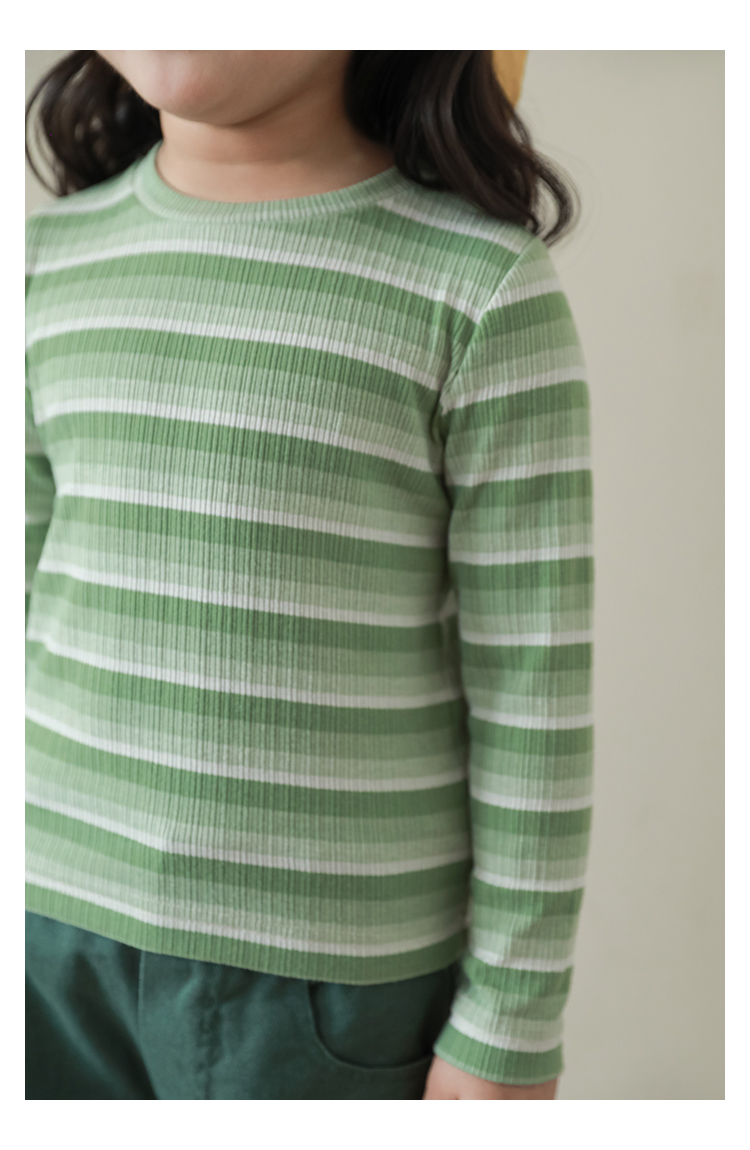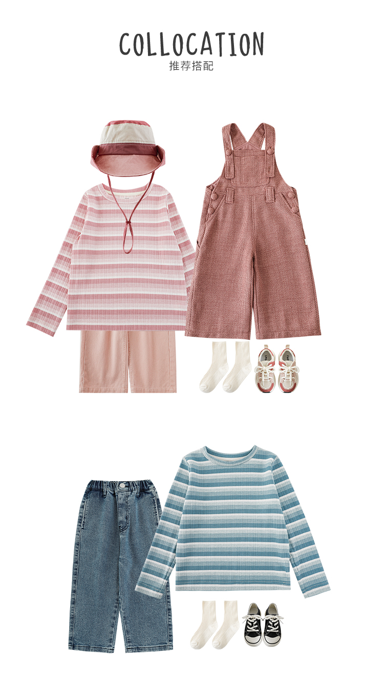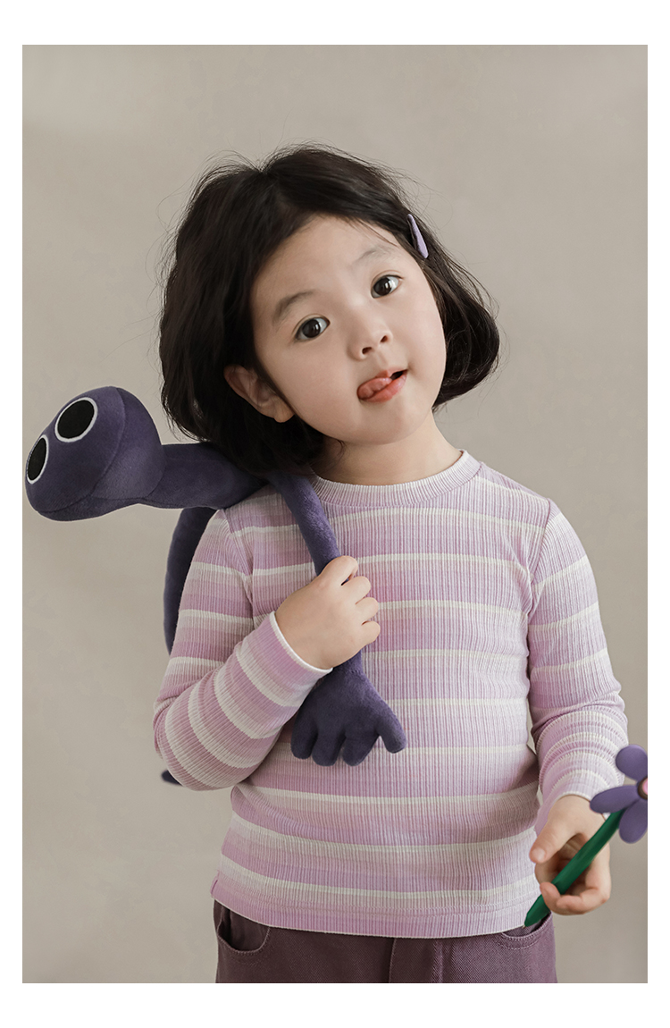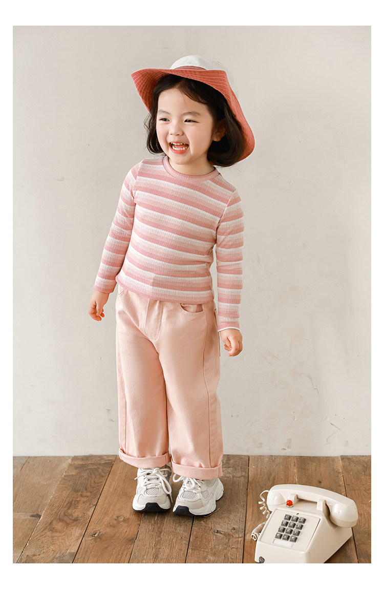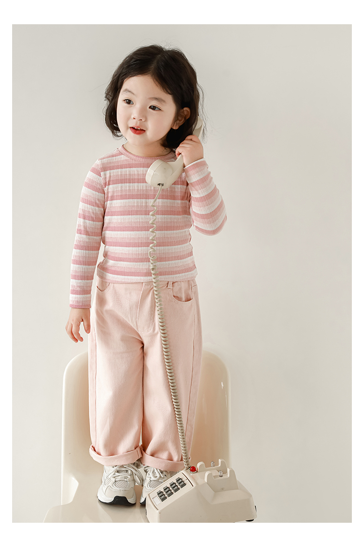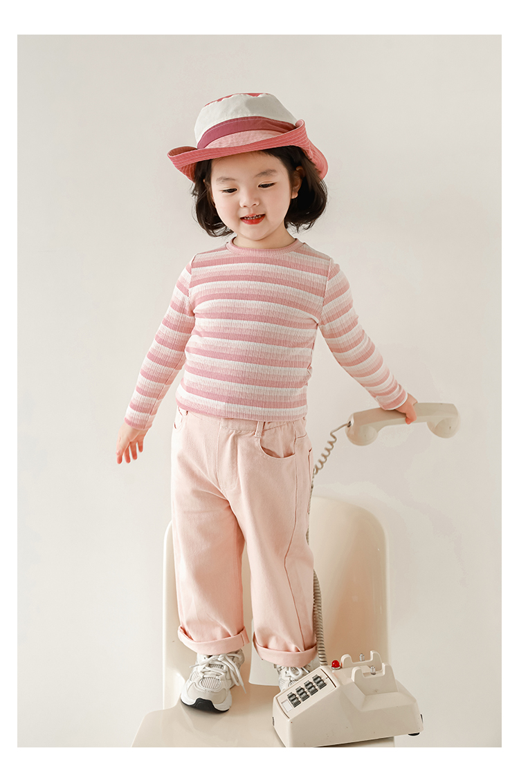 우리부이 여아 그라데이션 스트라이프 이너웨어 2025 가을 아동 캔디 컬러 슬림핏 라운드넥 티셔츠 트렌디스토어 가기