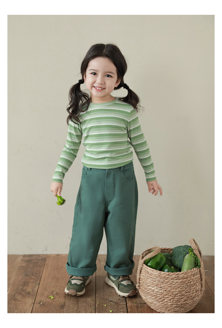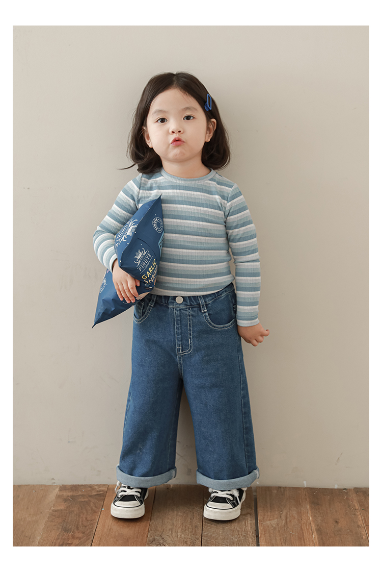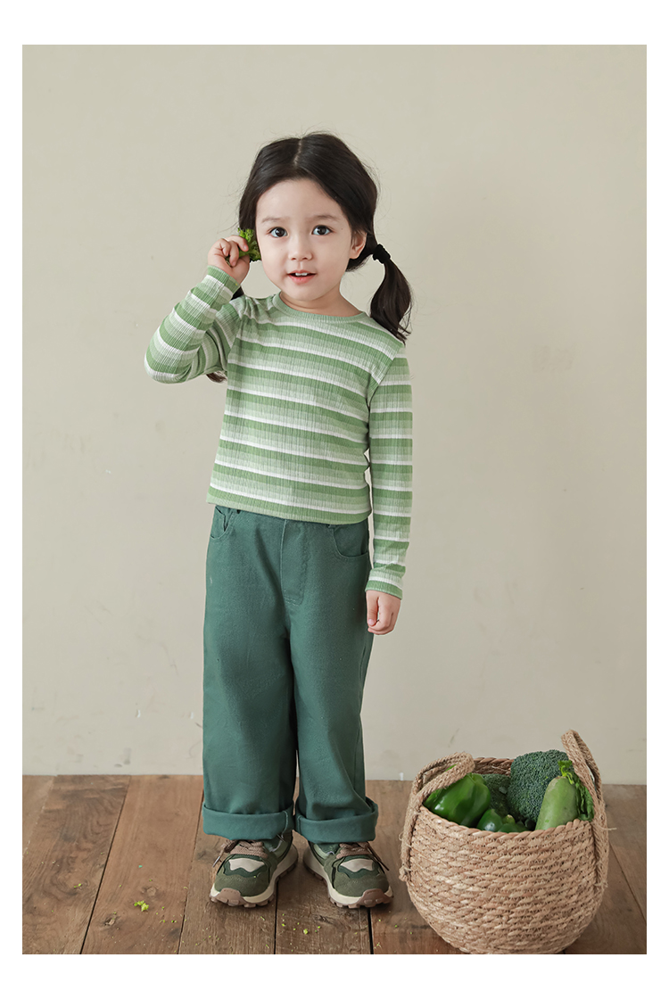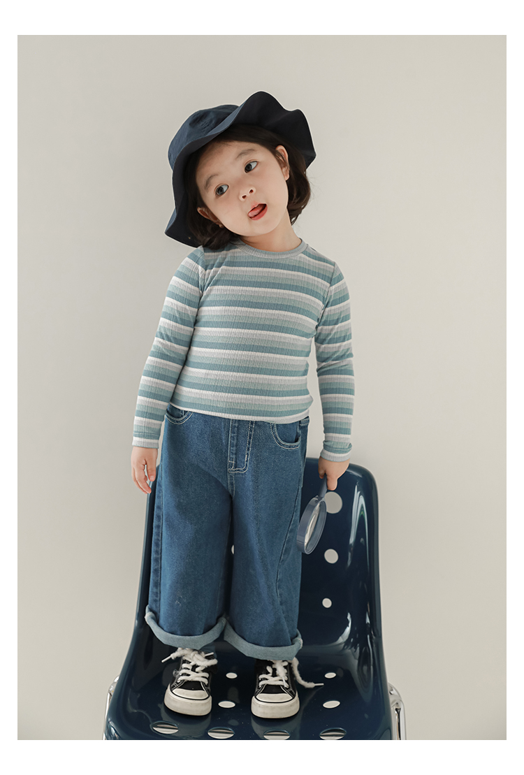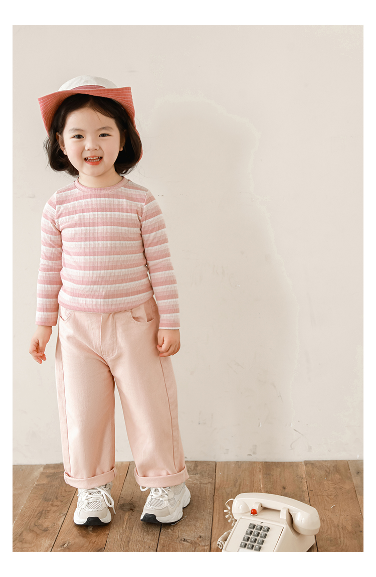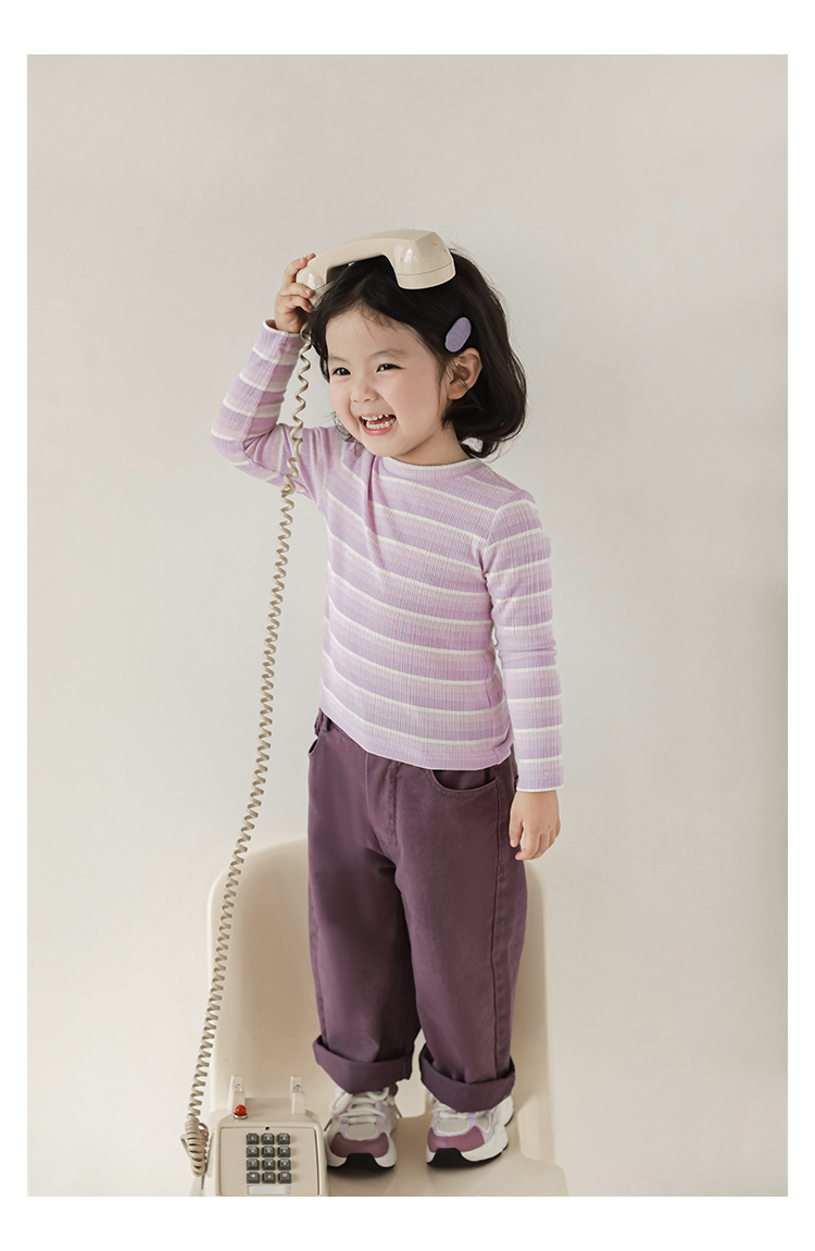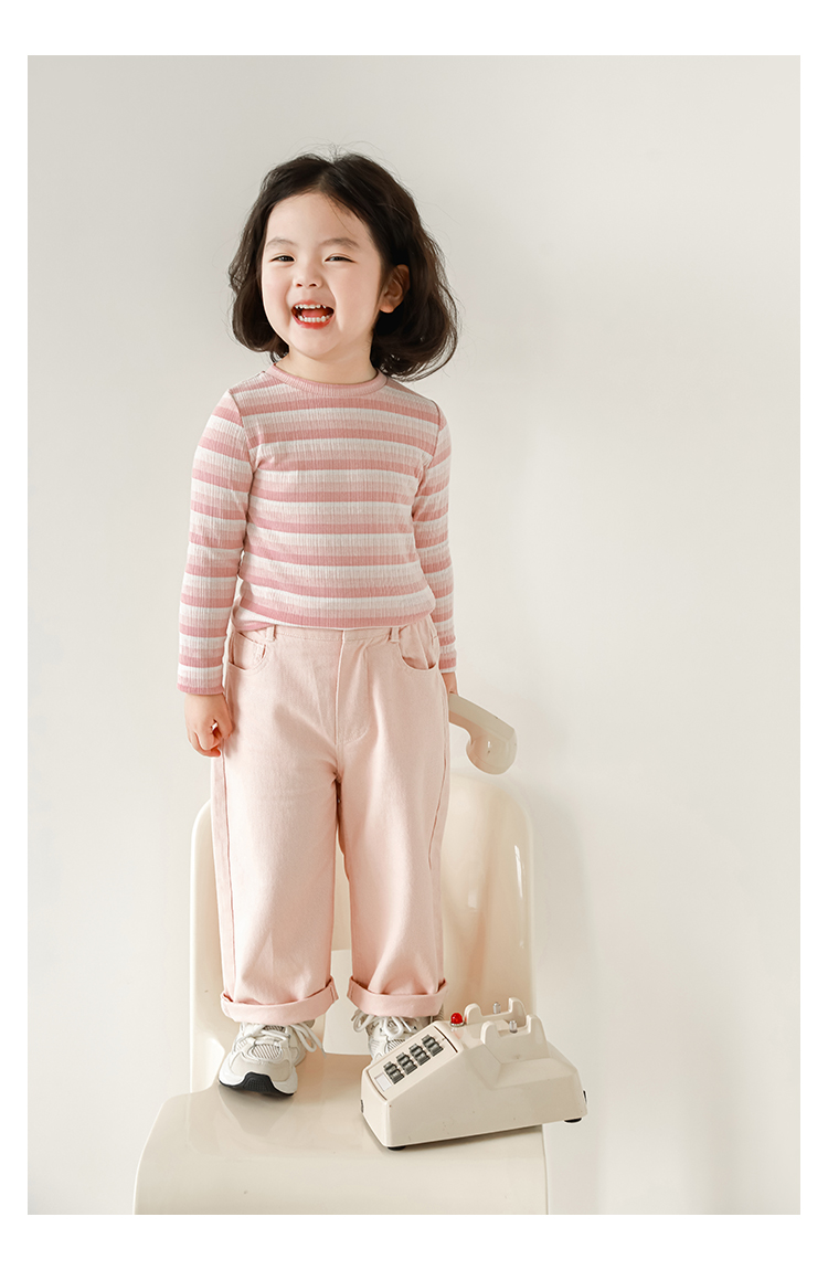 우리부이 여아 그라데이션 스트라이프 이너웨어 2025 가을 아동 캔디 컬러 슬림핏 라운드넥 티셔츠 트렌디스토어 가기