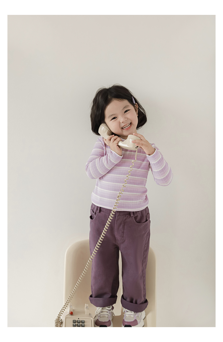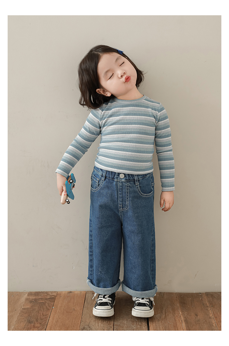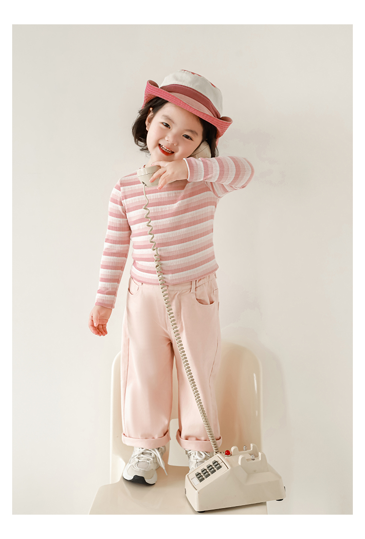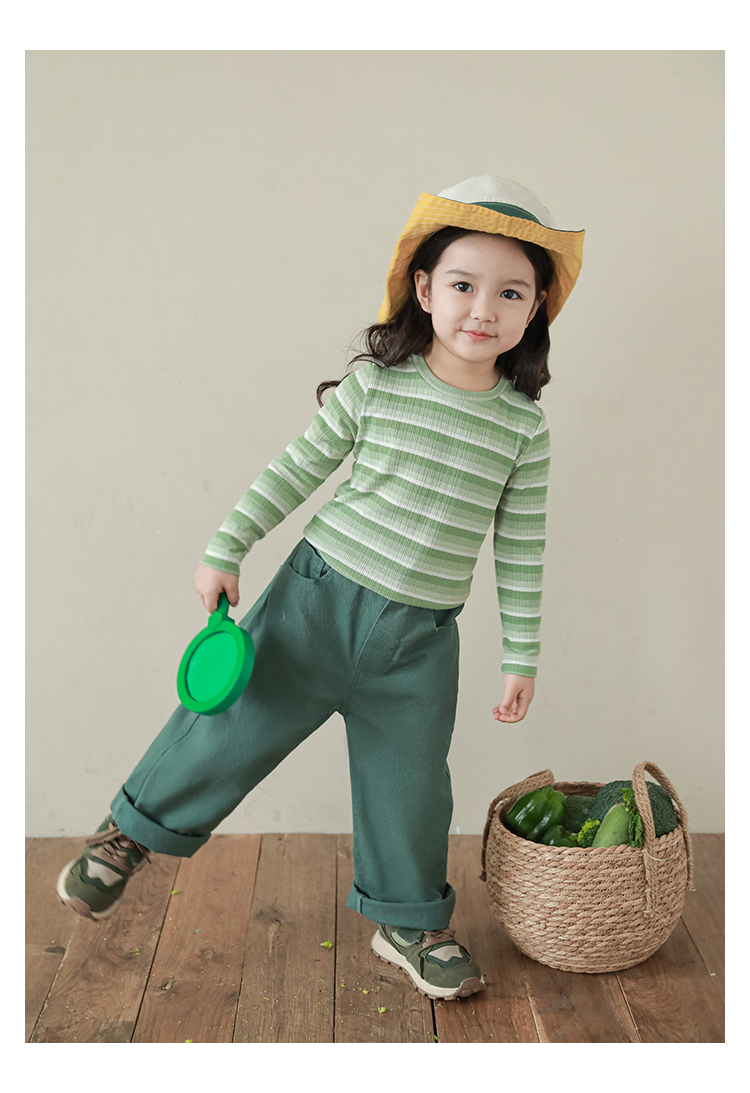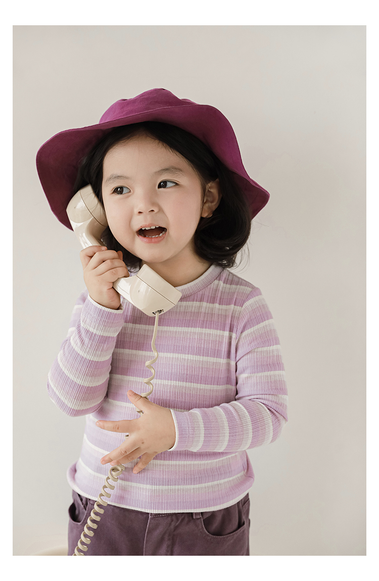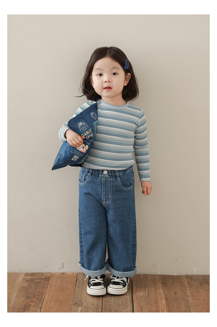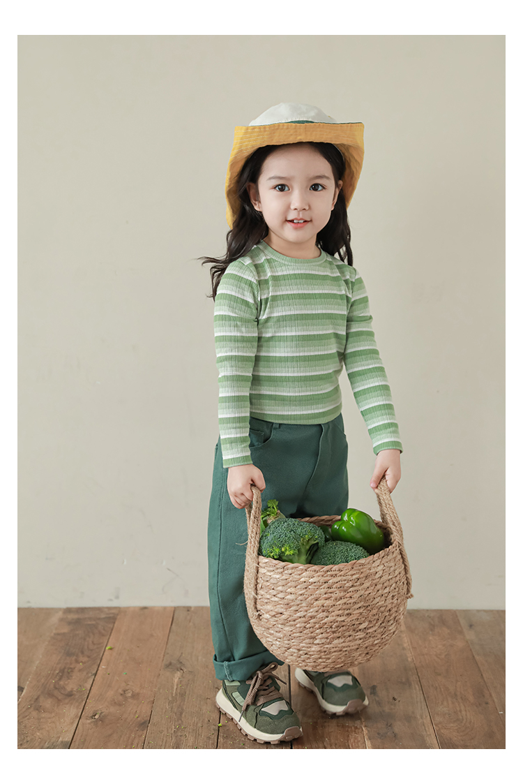 우리부이 여아 그라데이션 스트라이프 이너웨어 2025 가을 아동 캔디 컬러 슬림핏 라운드넥 티셔츠 트렌디스토어 가기