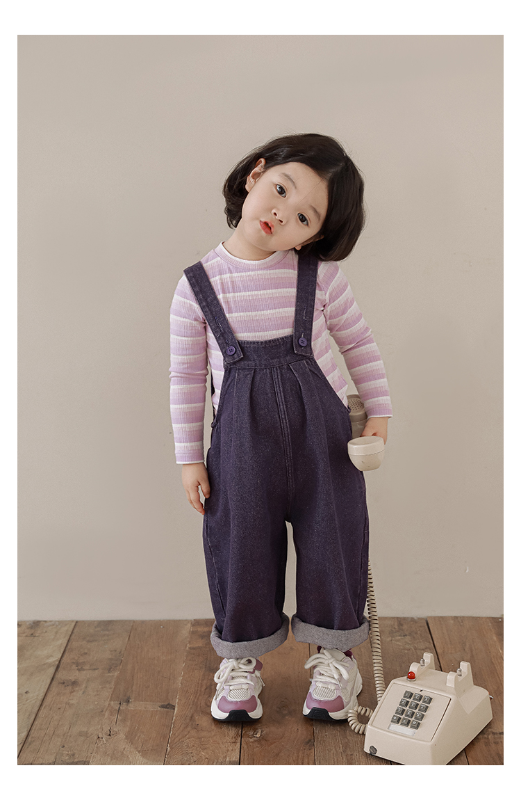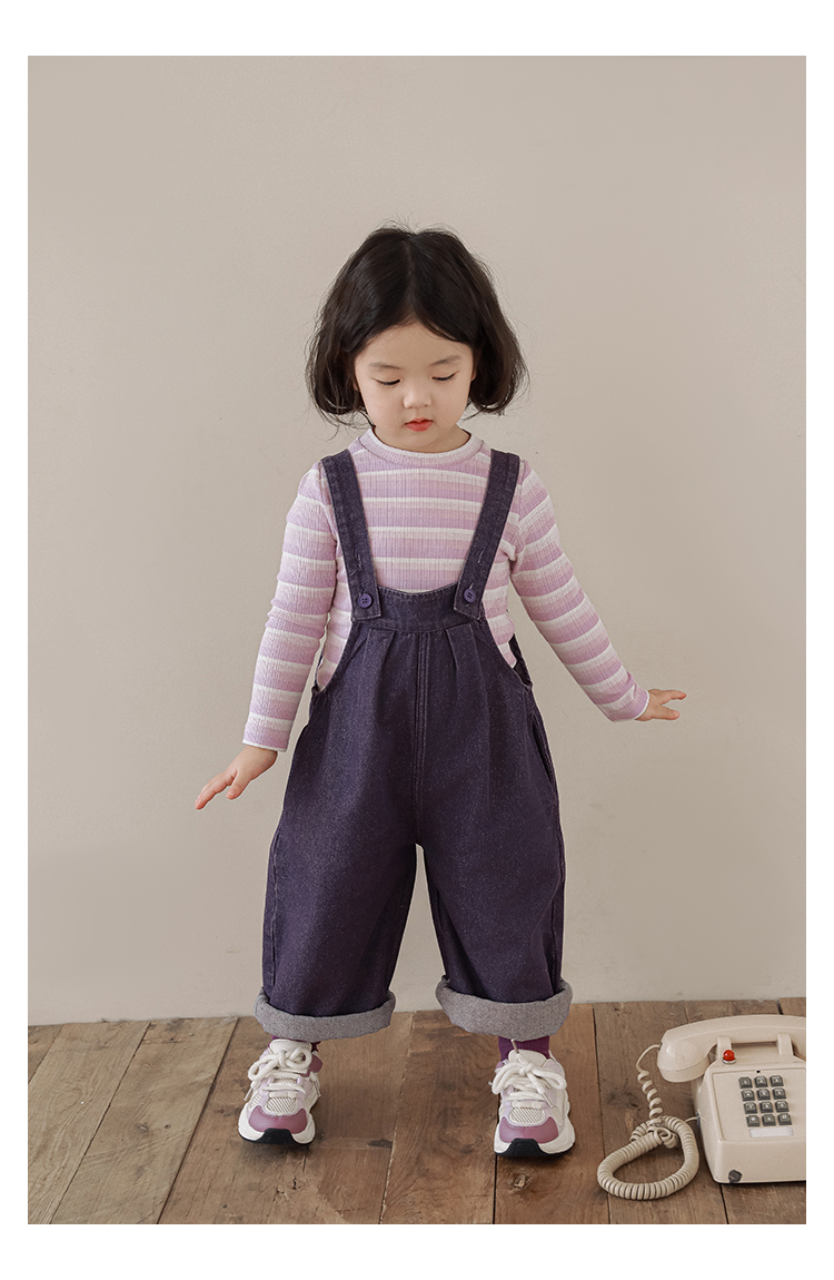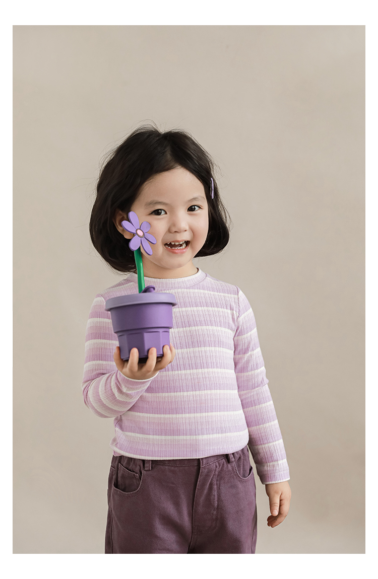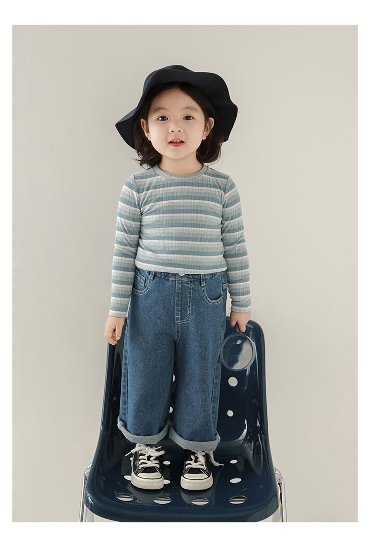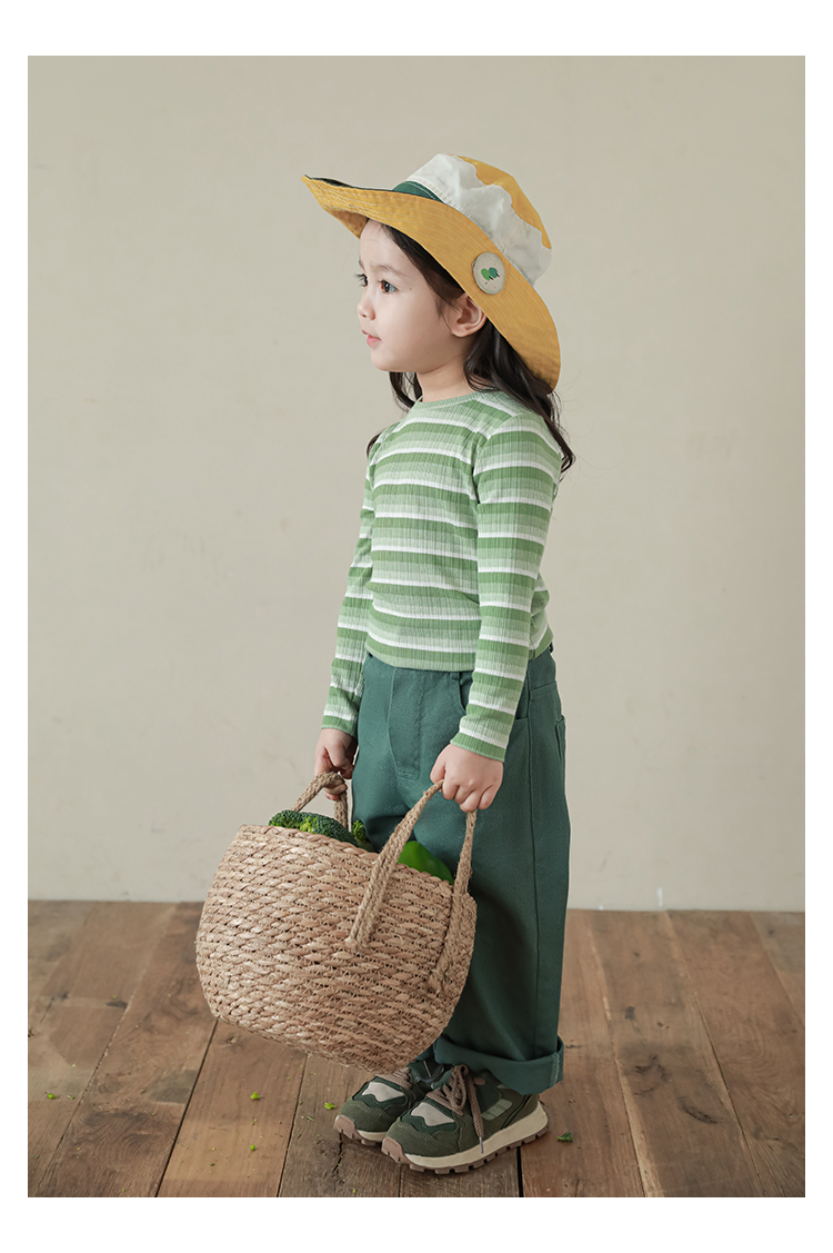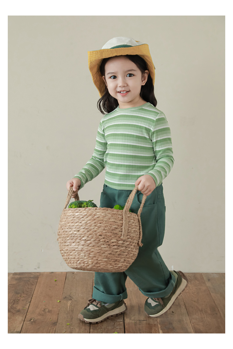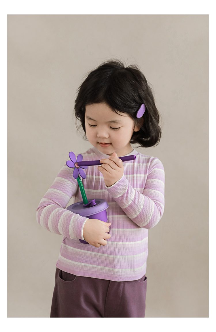우리부이 여아 그라데이션 스트라이프 이너웨어 2025 가을 아동 캔디 컬러 슬림핏 라운드넥 티셔츠 트렌디스토어 가기