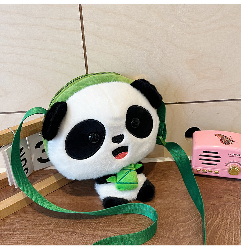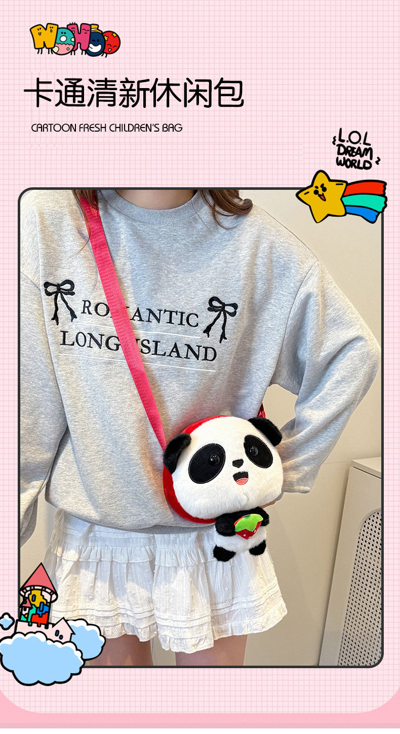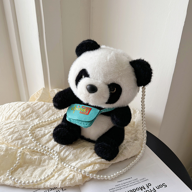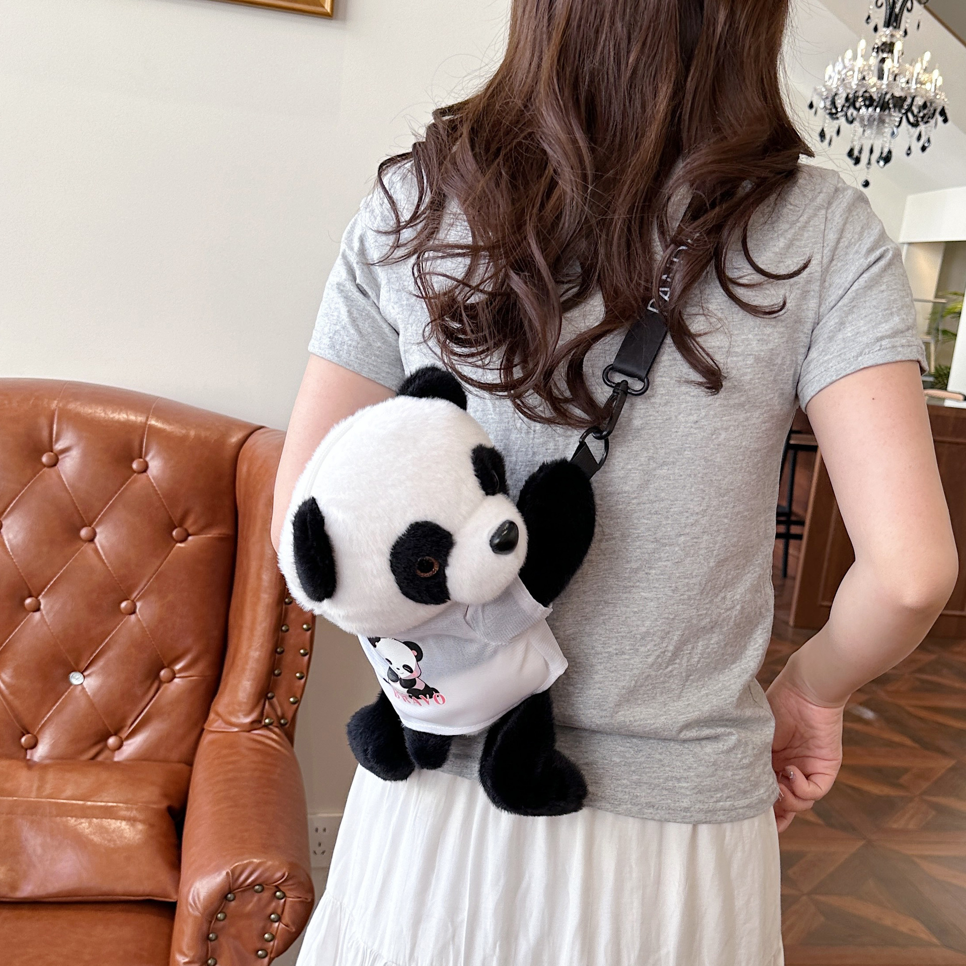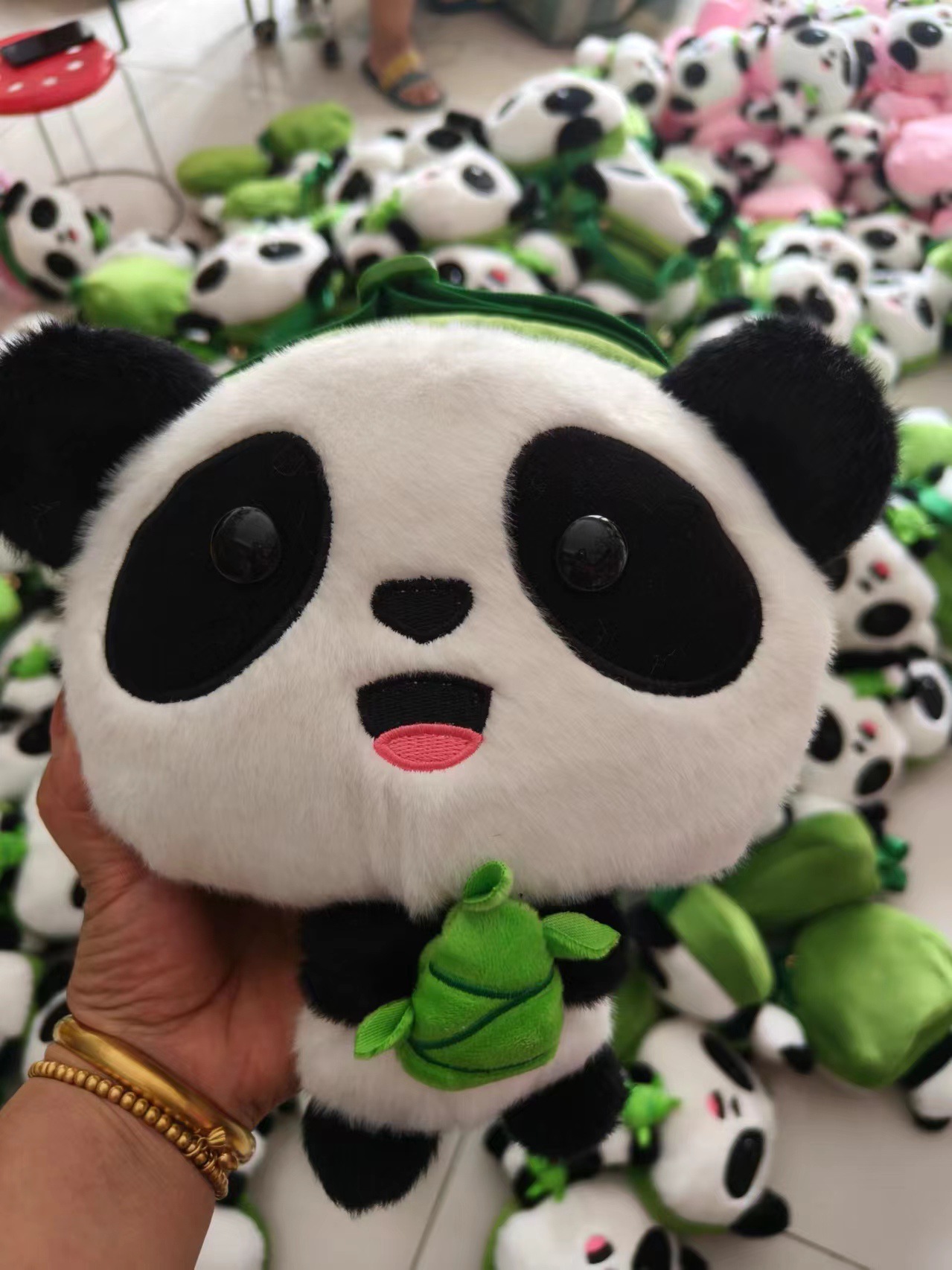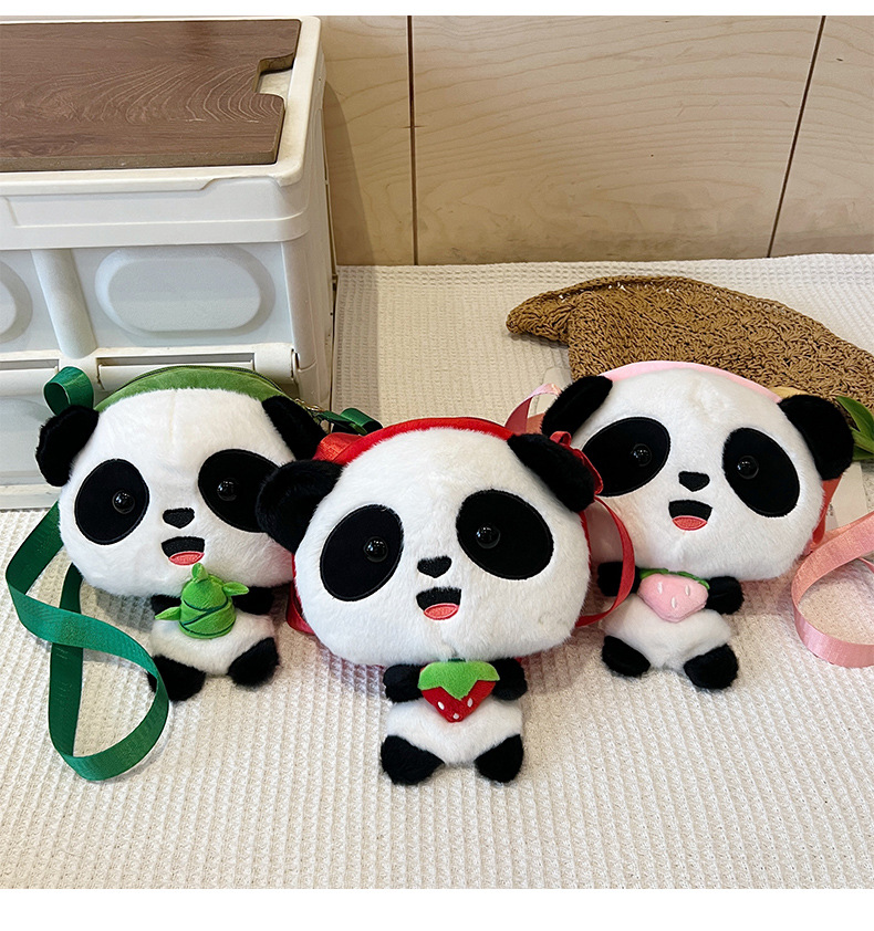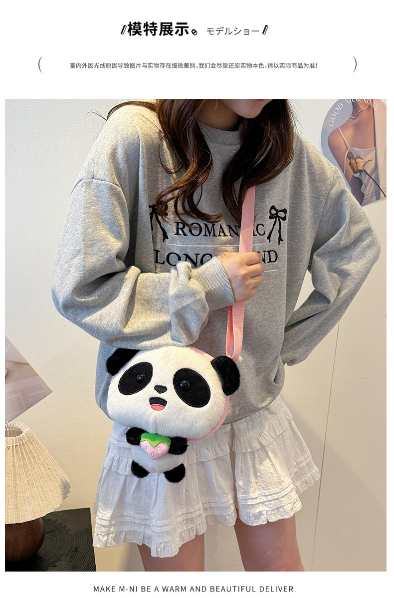 2024 새로운 팬더 인형 가방 봉제 장난감 대각선 가방 여성용 어깨 깡통 만화 가방 도매스토어 가기