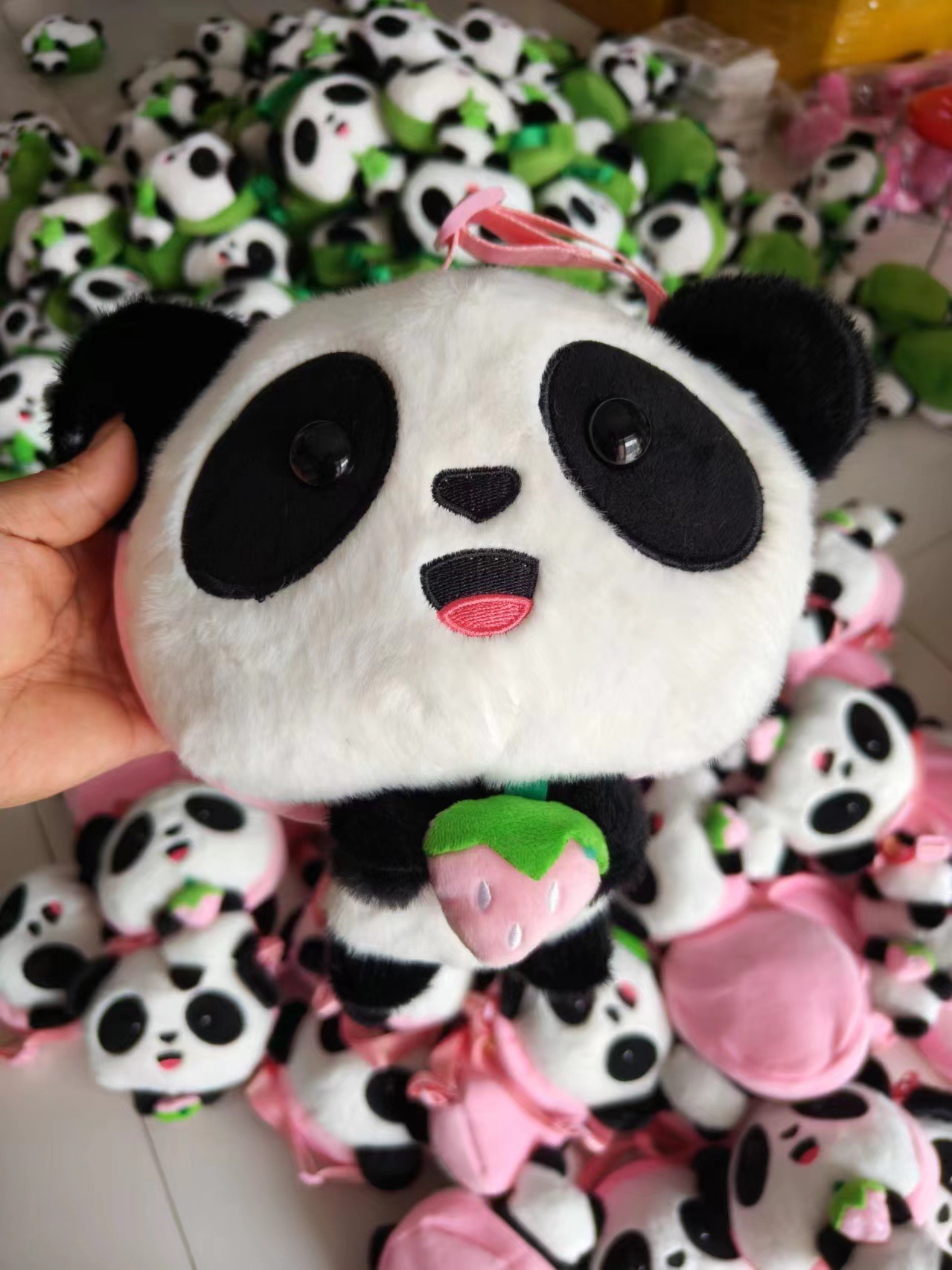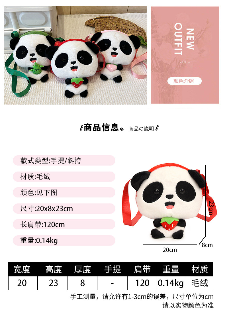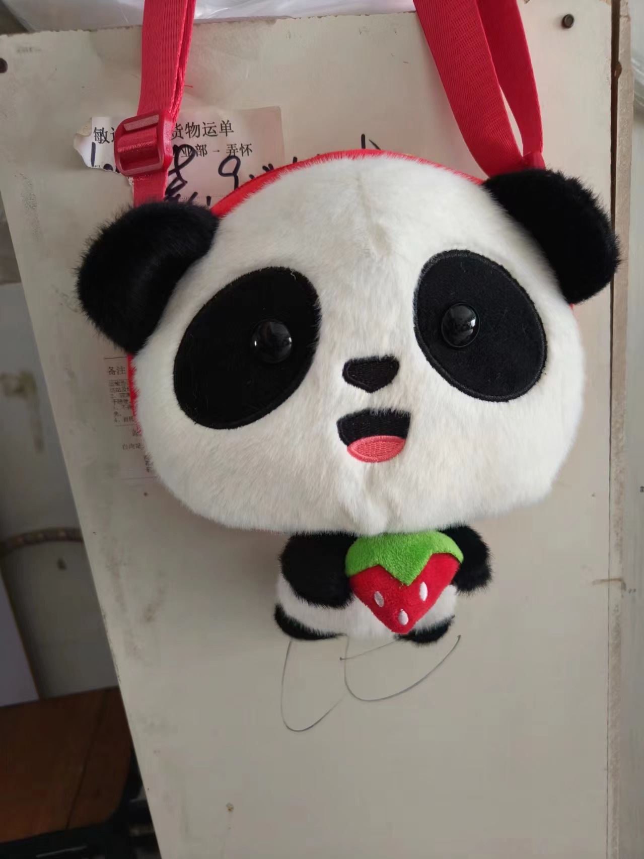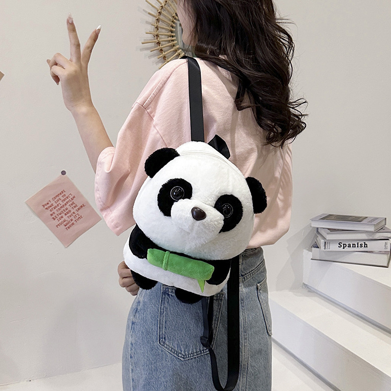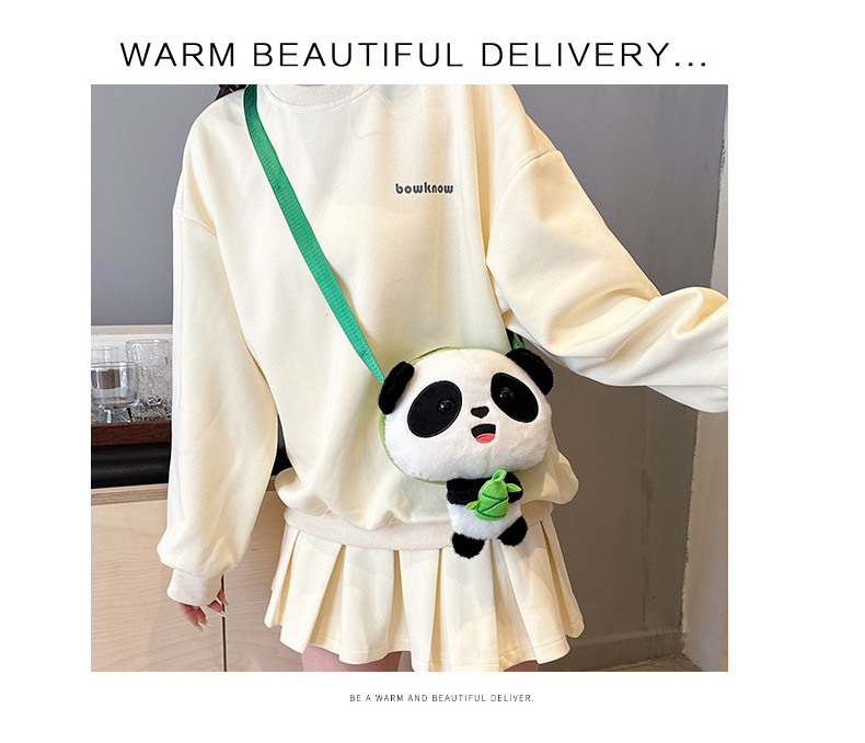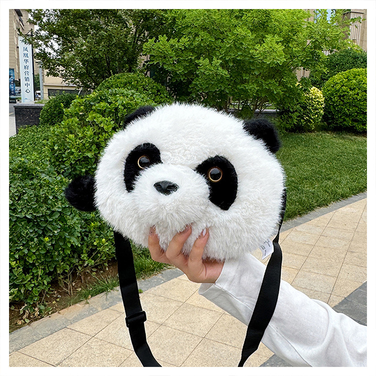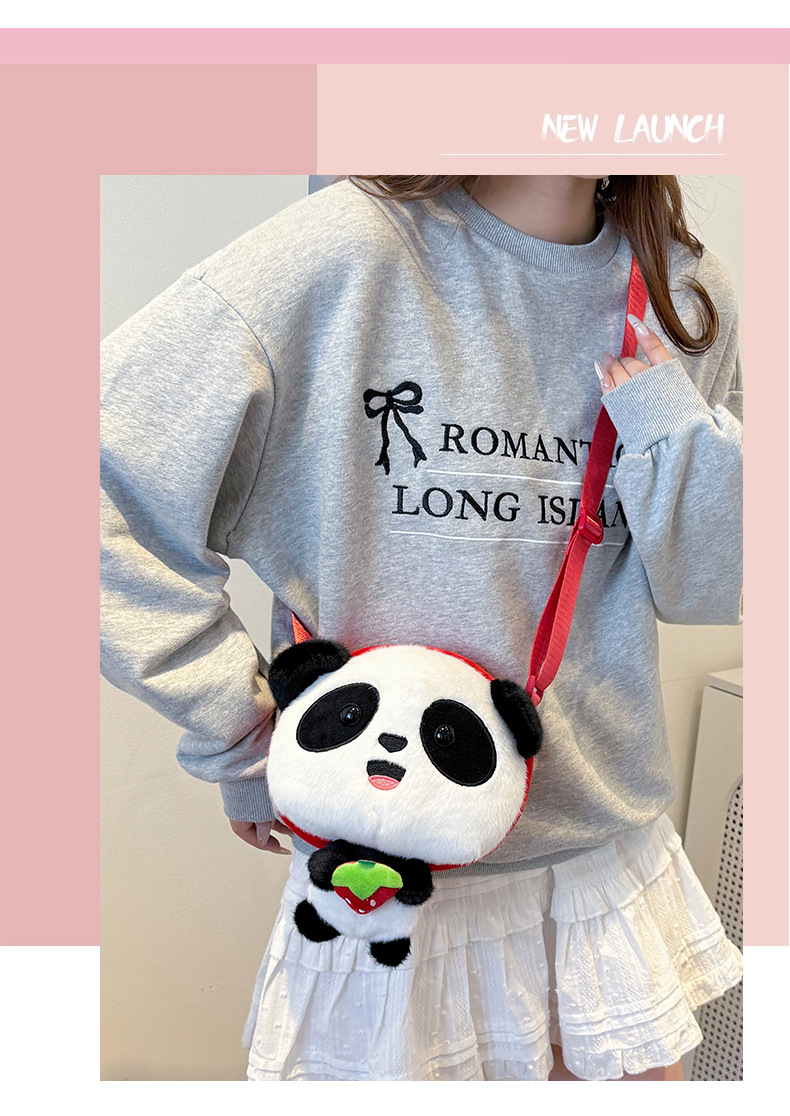 2024 새로운 팬더 인형 가방 봉제 장난감 대각선 가방 여성용 어깨 깡통 만화 가방 도매스토어 가기