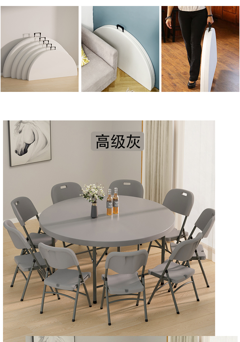 라운드 간단한 접이식 식탁 가구 플라스틱 대형 라운드 테이블 접히는 식탁 야외 식품 실 테이블 및 의자 10 명