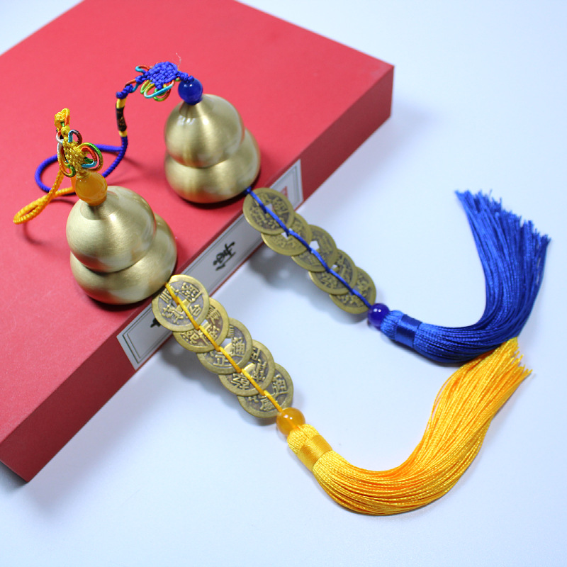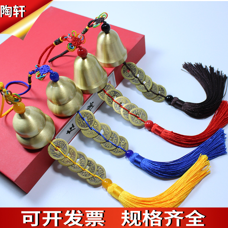 다섯 황제 돈 순수 구리 벨 자동차 매달려 구리 바람 벨 풍수 펜던트 자동차 펜던트 문 장식 공예 구리 벨 선물