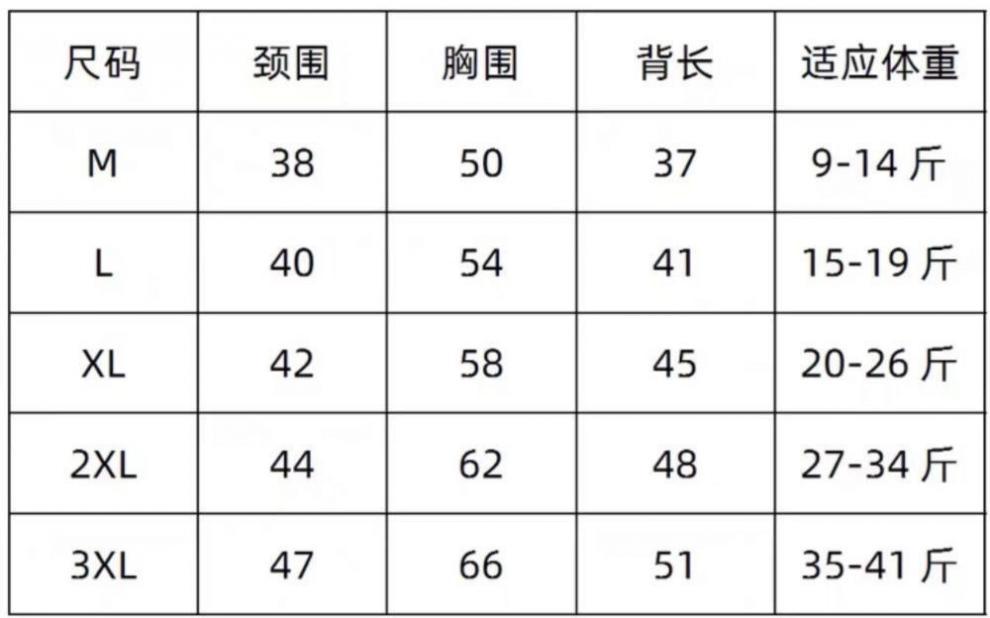 • 3Xl 추천 17.5-20.5kg 가슴둘레 66 정도