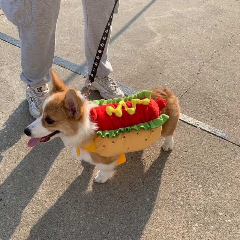 코기 개 옷 핫도그 햄버거 애완 동물 고양이 Marzis 가을과 겨울 재미있는 재미있는 옷스토어 가기