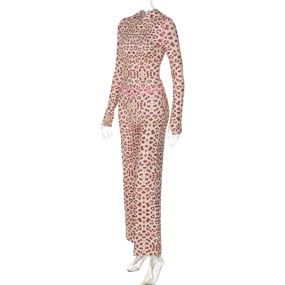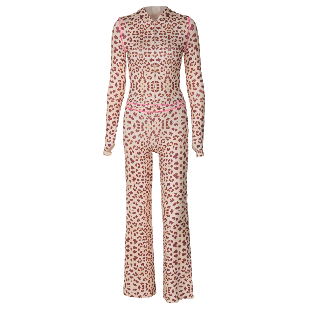 유럽풍 2026 여름 신상 패션 후드 가디건 상의 레오파드 프린트 하이웨이스트 타이트 팬츠 세트 여성용