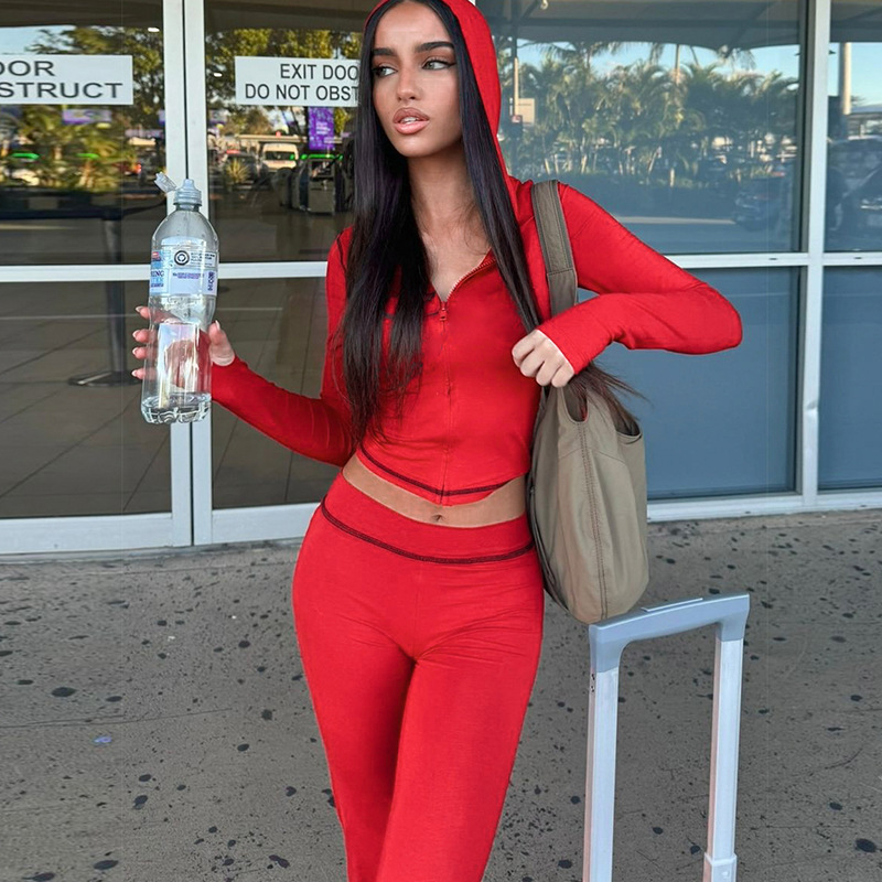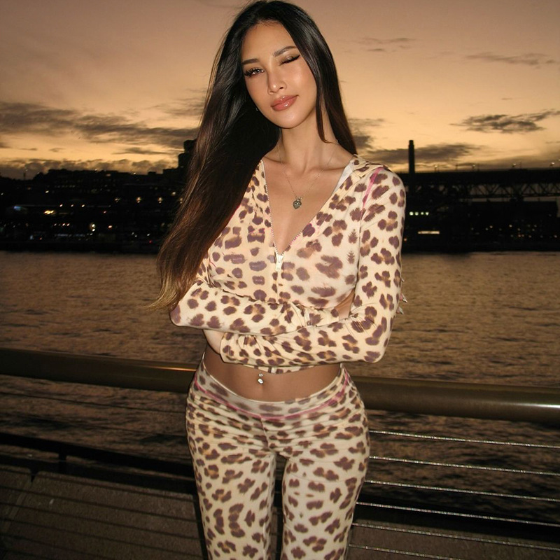 유럽풍 2026 여름 신상 패션 후드 가디건 상의 레오파드 프린트 하이웨이스트 타이트 팬츠 세트 여성용스토어 가기