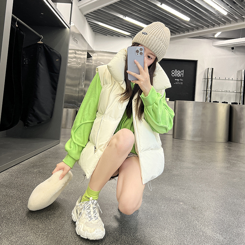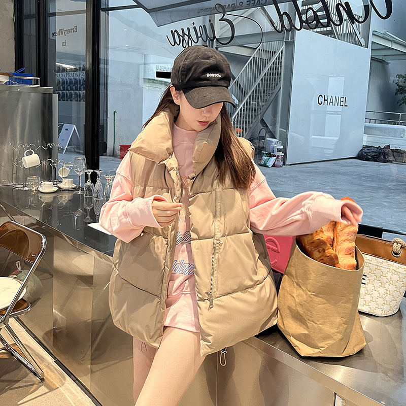 다운 코튼 조끼 여성 패셔너블 아우터 2024 가을과 겨울 뉴 코튼 웨이스트 코트 느슨한 한국 스타일 칼라 코튼 패딩 재킷 조끼스토어 가기