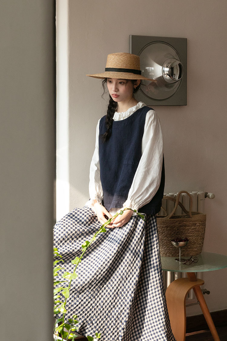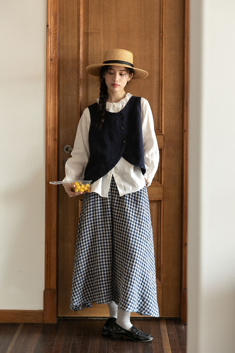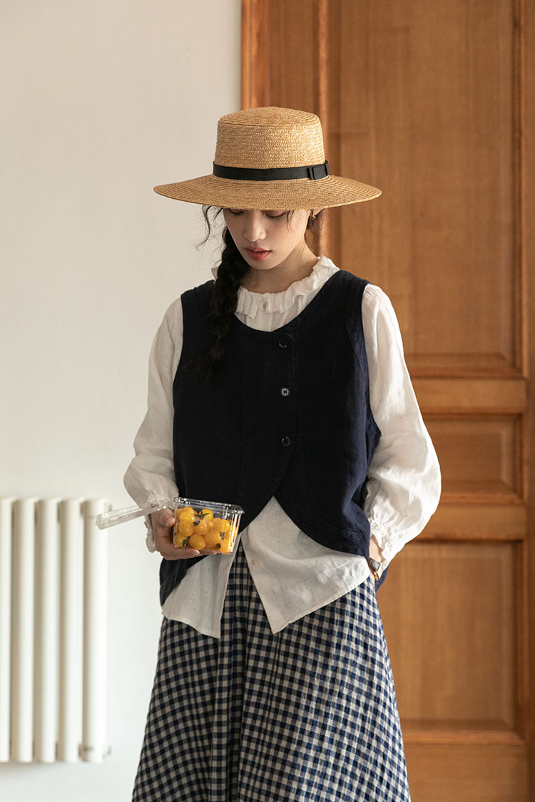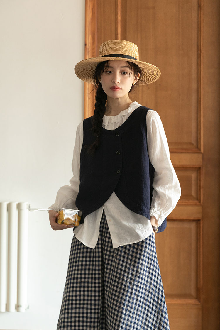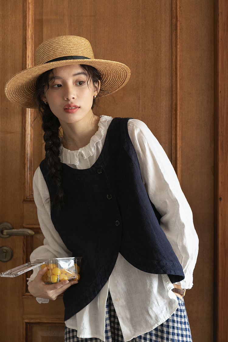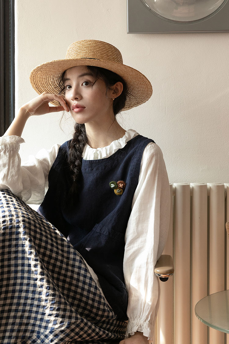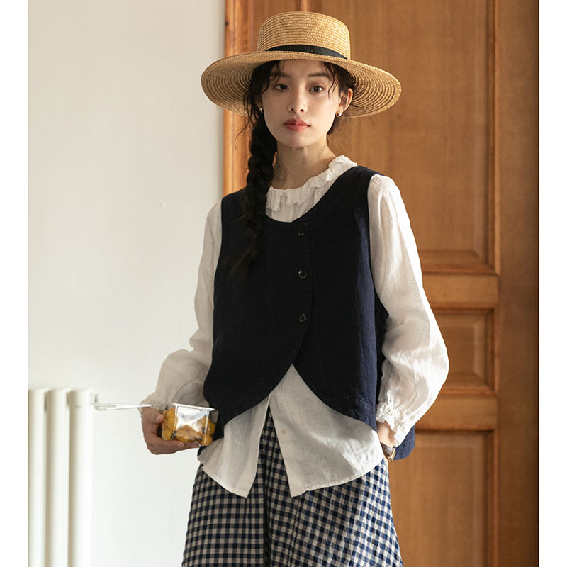 가을 2024 새로운 도착 프랑스 예술적 복고풍 꽃 목화 린넨 긴 소매 흰색 셔츠 짧은 조끼스토어 가기