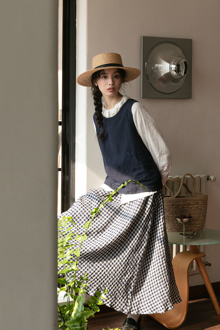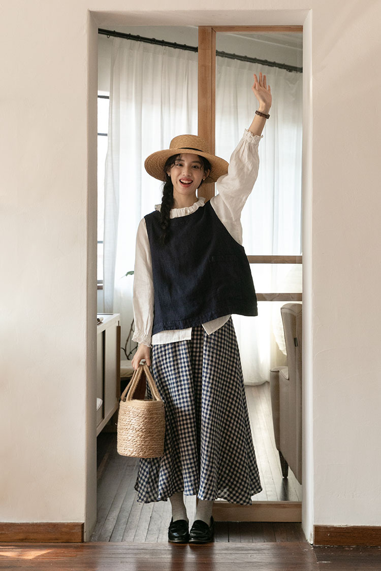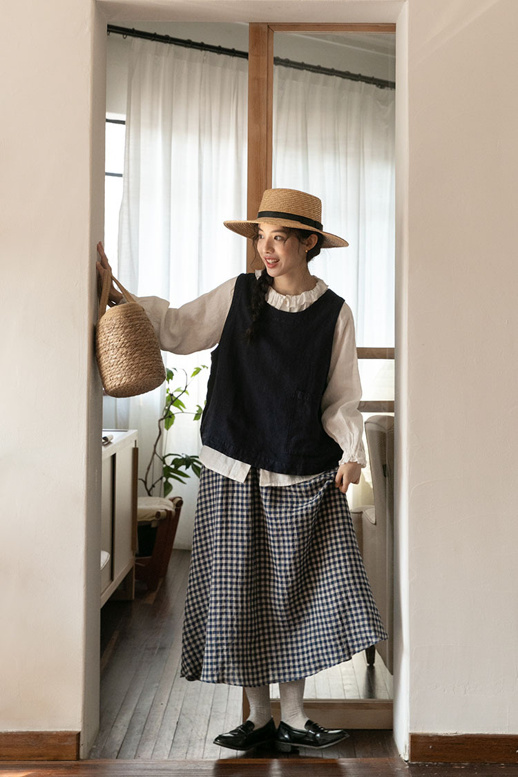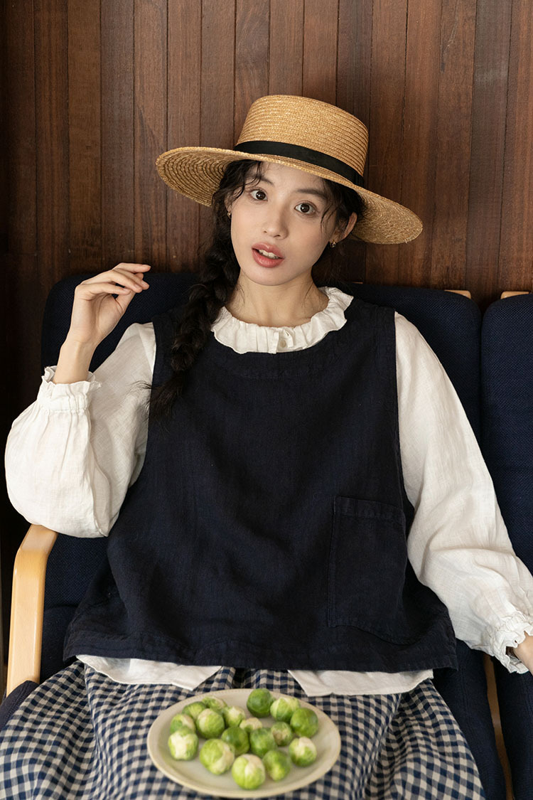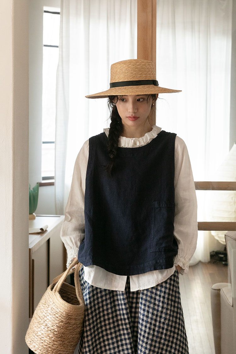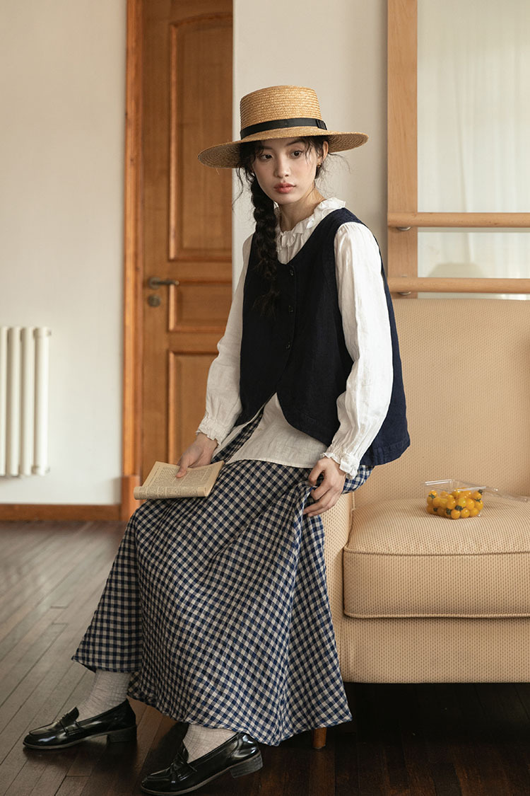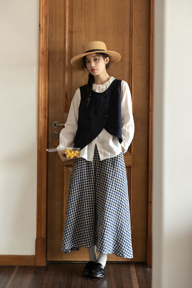 가을 2024 새로운 도착 프랑스 예술적 복고풍 꽃 목화 린넨 긴 소매 흰색 셔츠 짧은 조끼스토어 가기