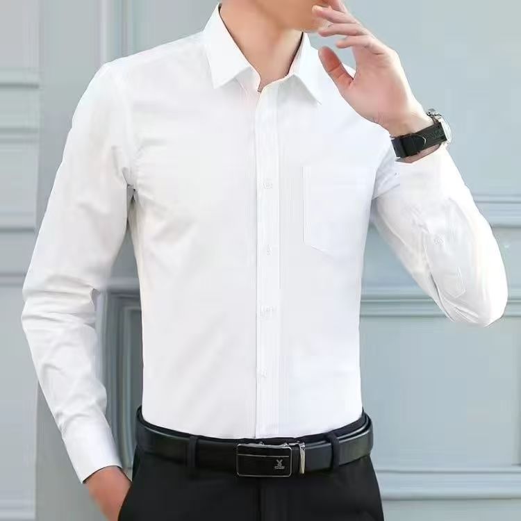 가을 2024 새로운 솔리드 컬러 올 매치 긴팔 셔츠 남성 비즈니스 캐주얼 셔츠 전문 원피스 한국식 슬림 핏 트렌디