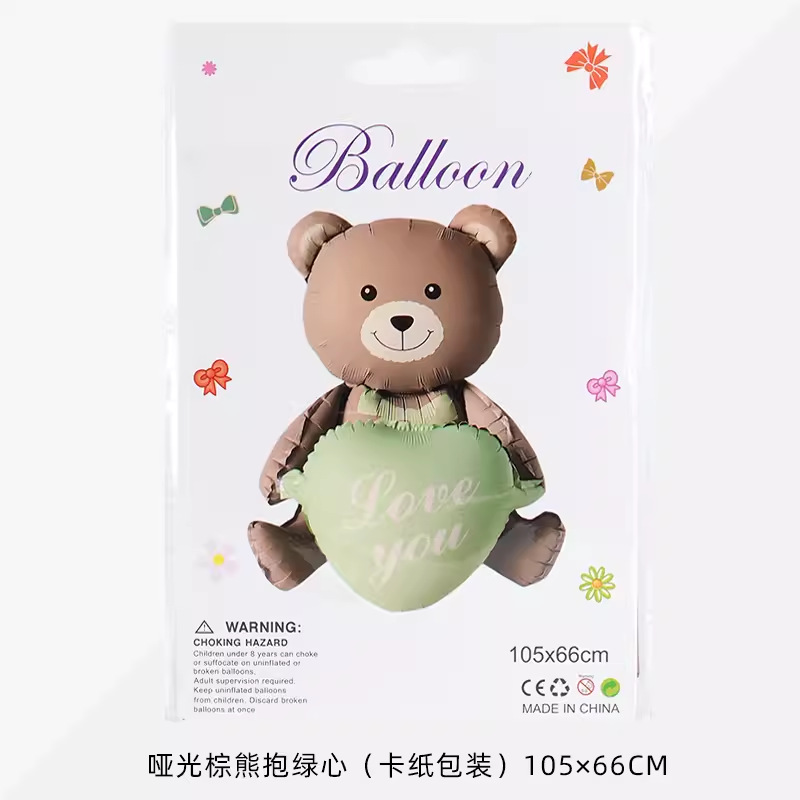• 녹색 하트를 안고 있는 매트 브라운 베어(골판지 포장)