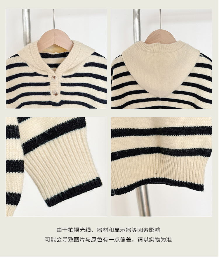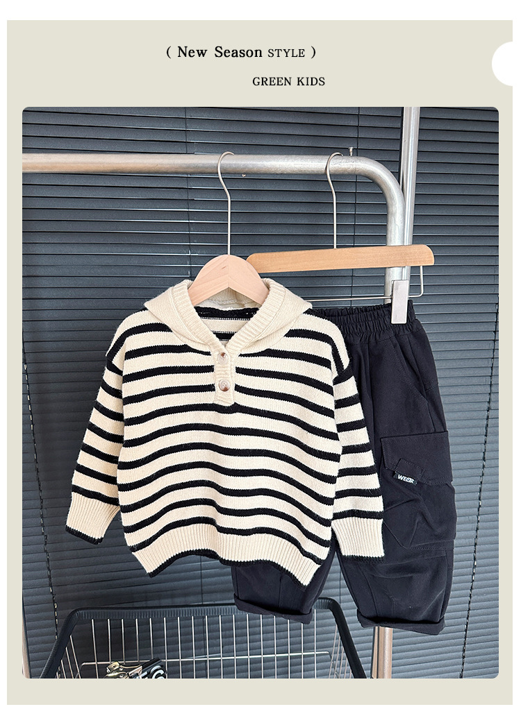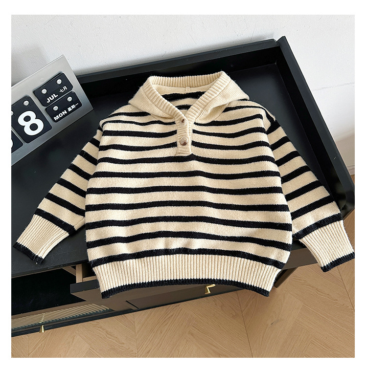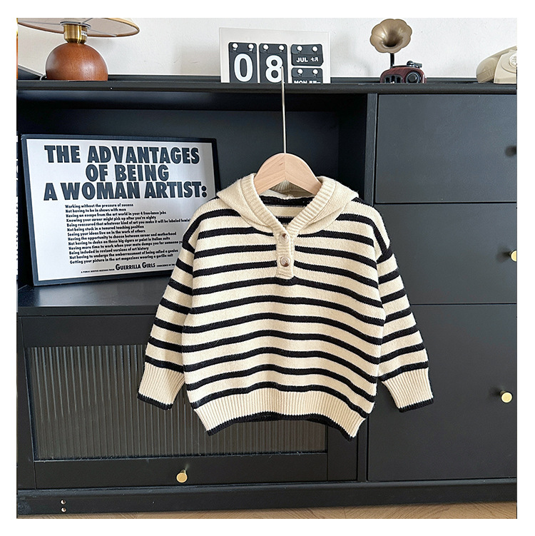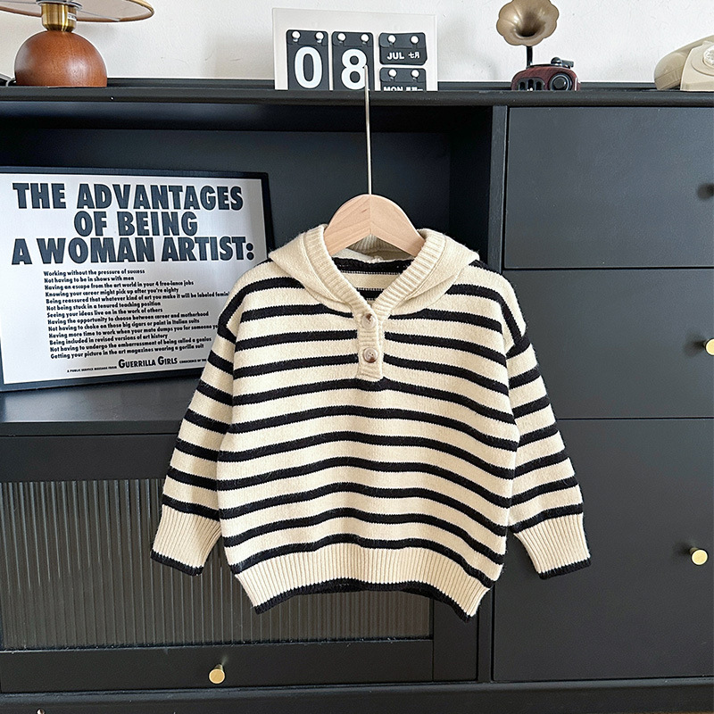 시안 아오 2024 가을 새 아동복 어린이 한국식 올매치 스웨터 트렌디 스트라이프 후드 스웨터 소년 소녀