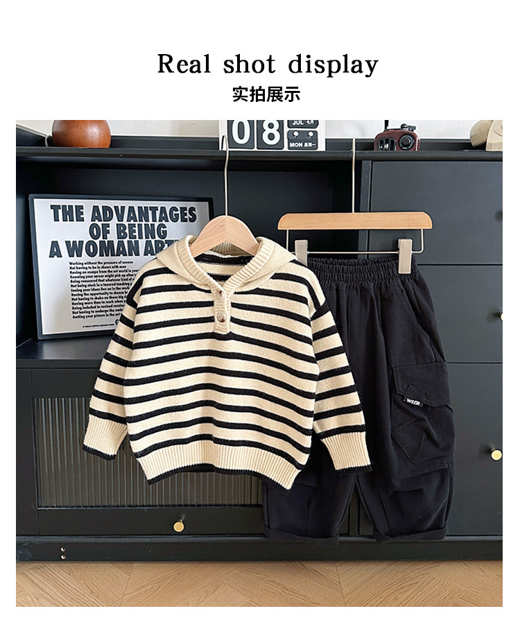 시안 아오 2024 가을 새 아동복 어린이 한국식 올매치 스웨터 트렌디 스트라이프 후드 스웨터 소년 소녀스토어 가기