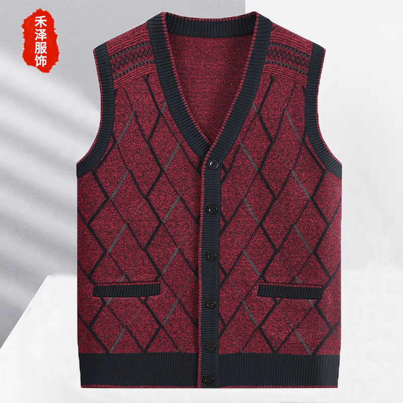 중년 및 노인 남성 의류 아버지의 양복 조끼 카디건 노인 양복 조끼 할아버지 플러스 사이즈 자카드 옷스토어 가기