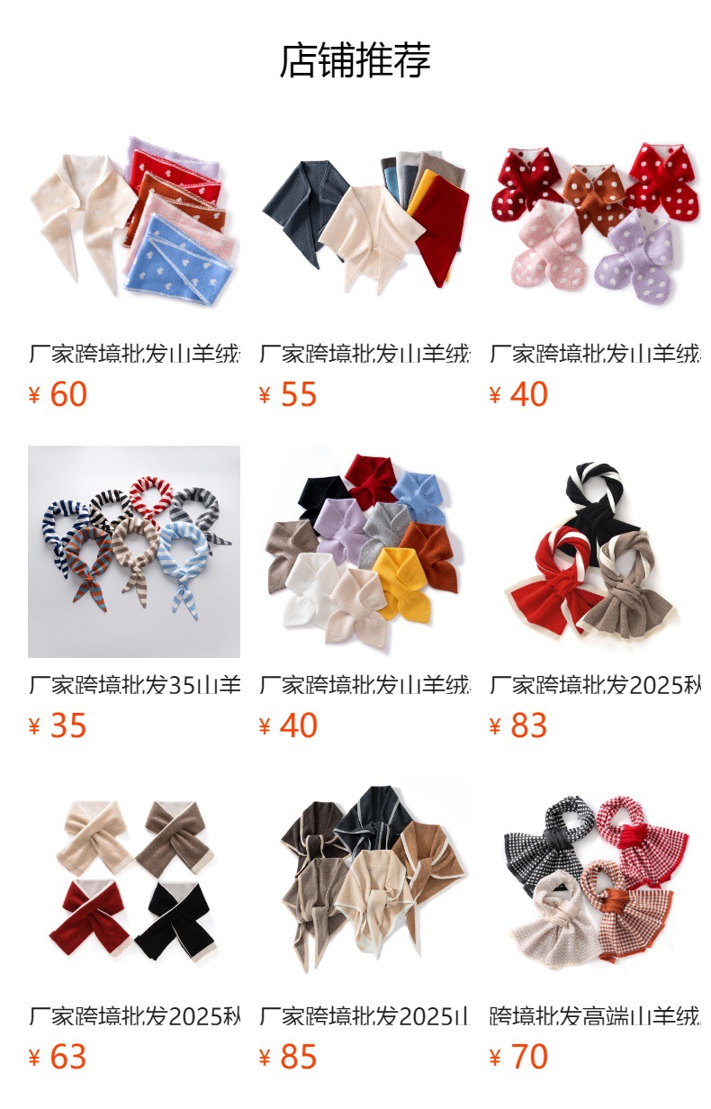 제조업체가 해외에서 도매하는 35% 캐시미어 삼각 스카프, 작은 스카프, 보온 목 보호 니트 캐시미어 스카프, 여성용, 재고 있음스토어 가기