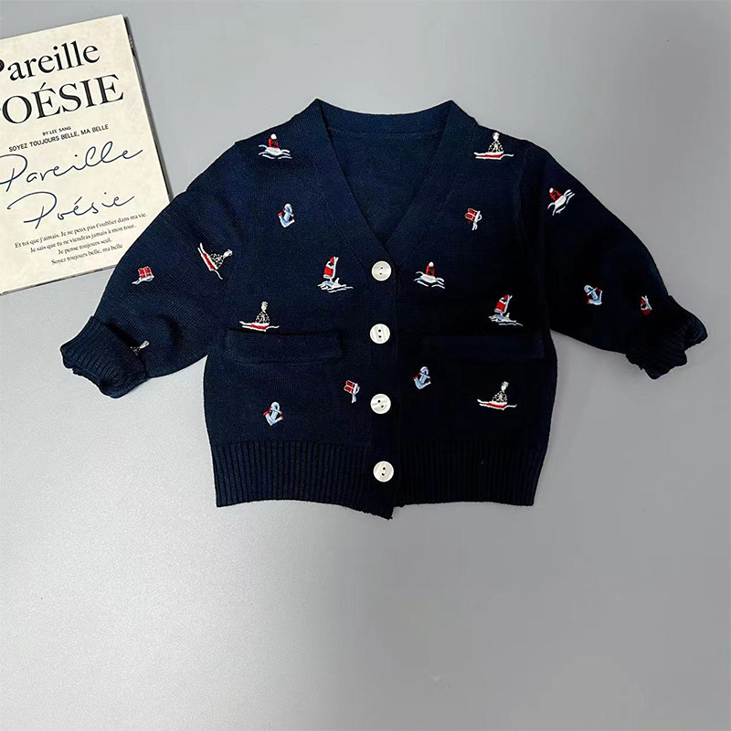 남학생 세트 봄 · 가을 새 한국 수놓은 항해 V 넥 니트웨어 베이비 카디건 재킷 캐주얼 의상스토어 가기