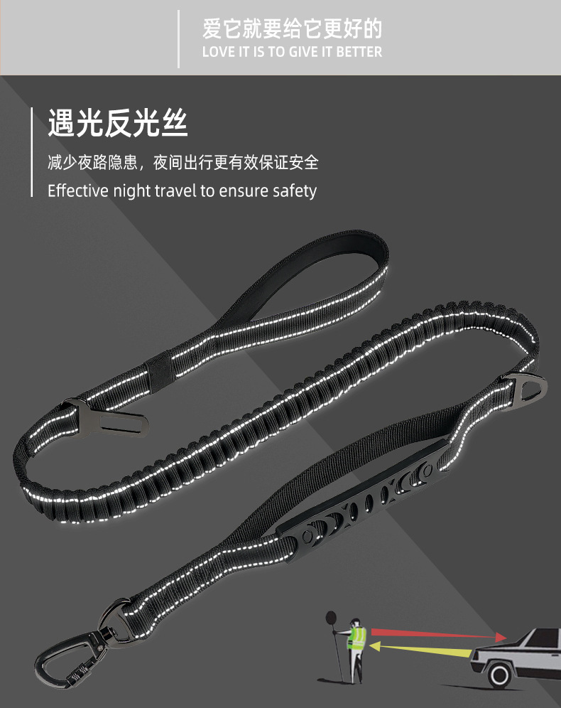 제조 업체 도매 탄성 개폐식 반사 개 가죽 끈 자동차 안전 버퍼 개 가죽 끈 다기능 개 산책 가죽 끈스토어 가기