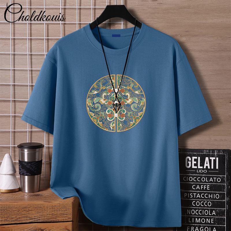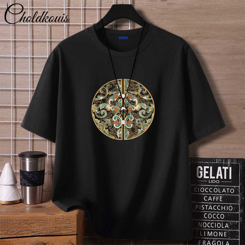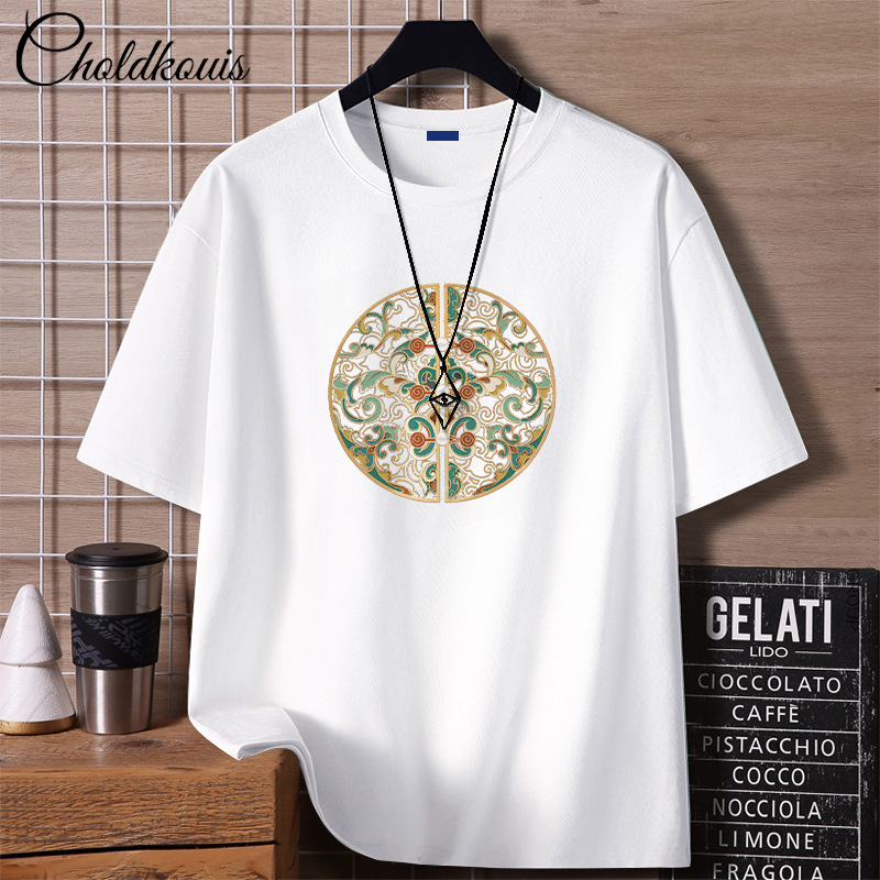 프린트된 순면 만화 반팔 루즈핏 캐주얼 여름 커플 티셔츠 남성 트렌디 신상 반팔 셔츠