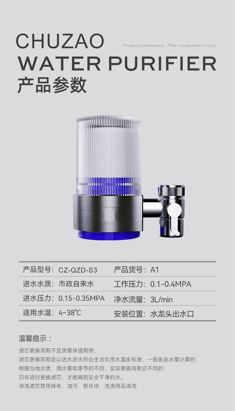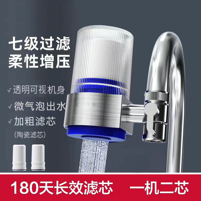 수도꼭지 정수기 새로운 고급 투명 수돗물 주방 물 필터 이동식 및 빨 수있는 염소 제거 스케일 억제 이중 출구