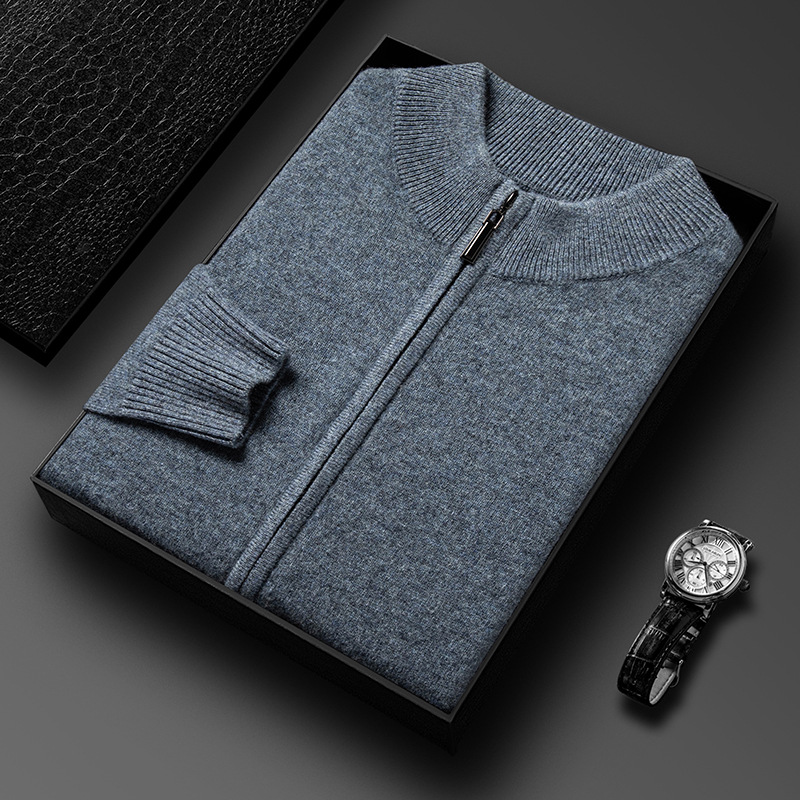 30 가을 울 500g 칼라 카디건 남자 중년 가을 및 겨울 두꺼운 울 스웨터 지퍼 니트 올 매치 스웨터스토어 가기