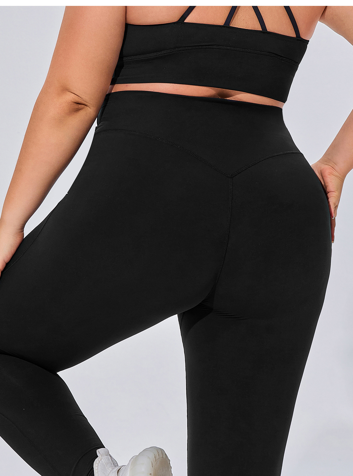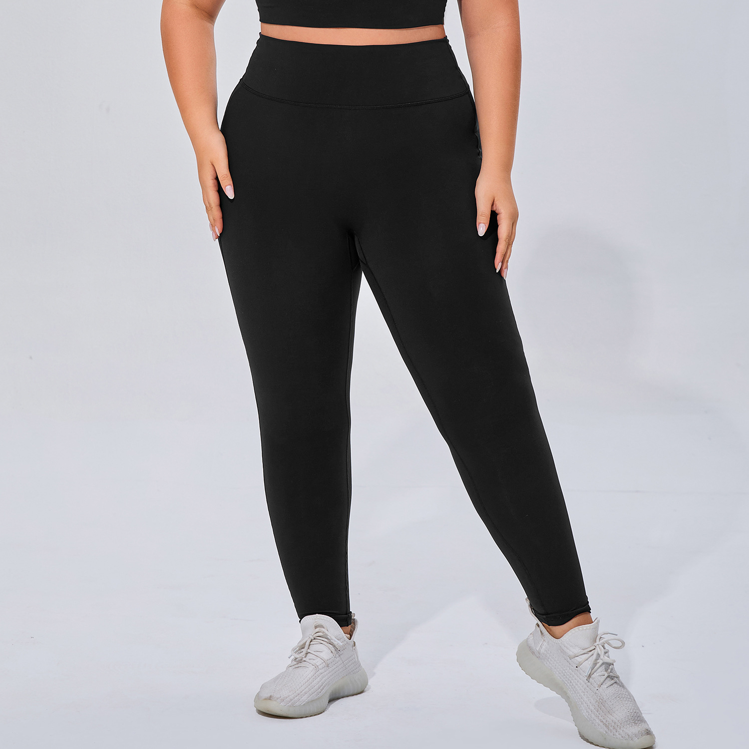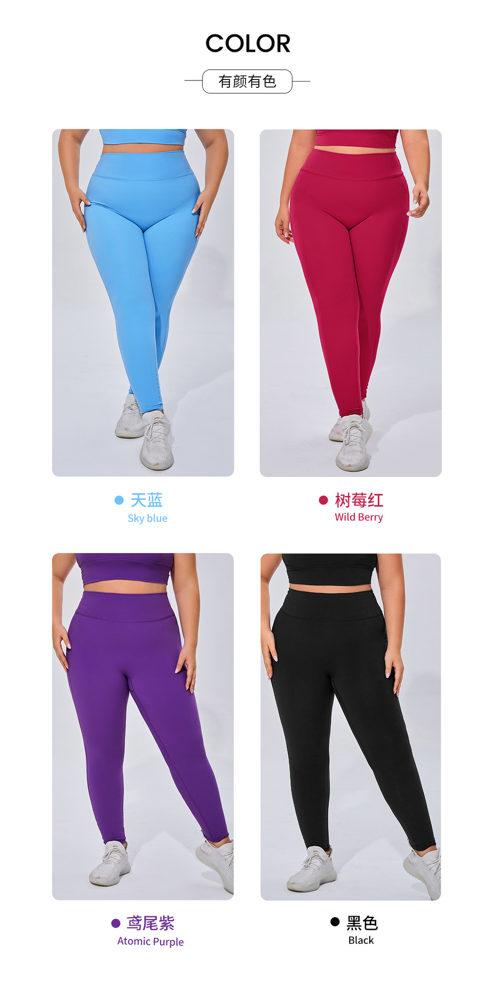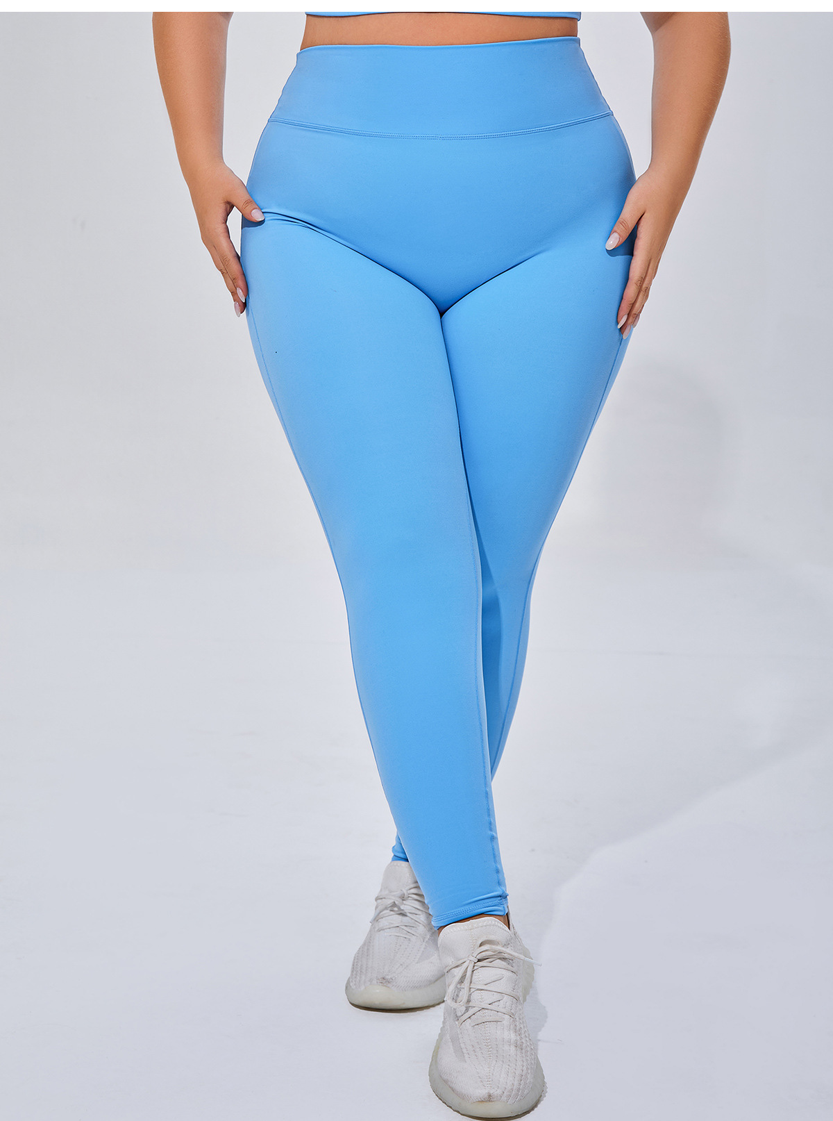 유럽 및 미국 대형 사이즈 하이웨이스트 요가 팬츠 여성용 복부 조임 힙업 타이트 스포츠 팬츠 누드감 통기성 러닝 피트니스 팬츠
