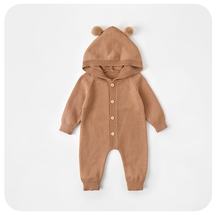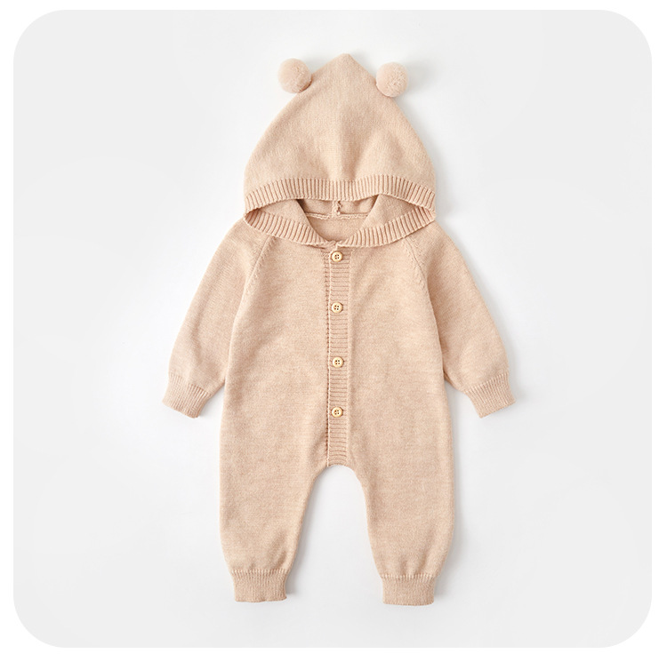 남자와 여자의 아기 니트 점프 수트 아기 옷 가을 서양식 귀여운 보름달 백일 후드 등반 세트스토어 가기