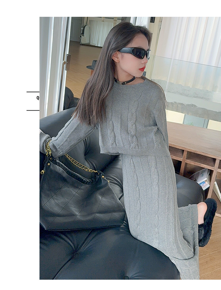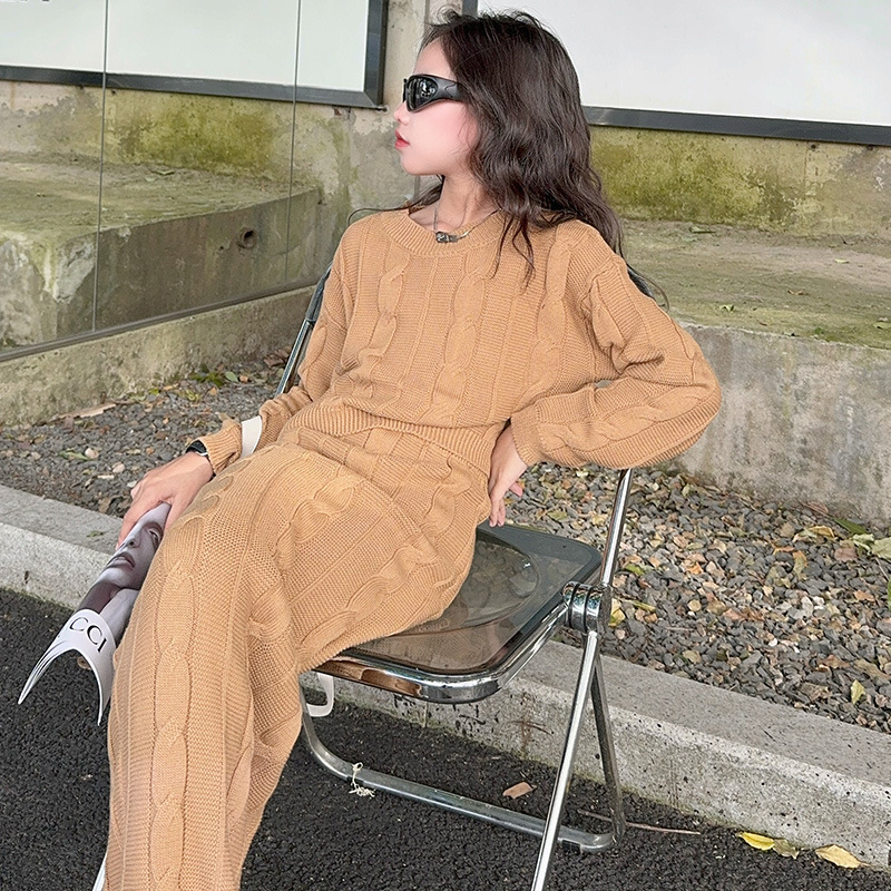 소녀 니트 원피스 봄 가을 겨울 2024 새로운 스타일 스웨터 니트 원피스 세트 게으른 스타일 투피스 세트스토어 가기