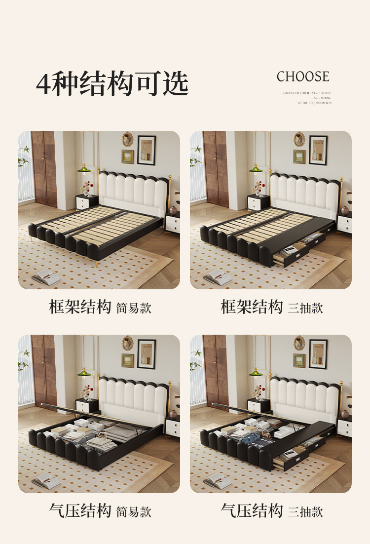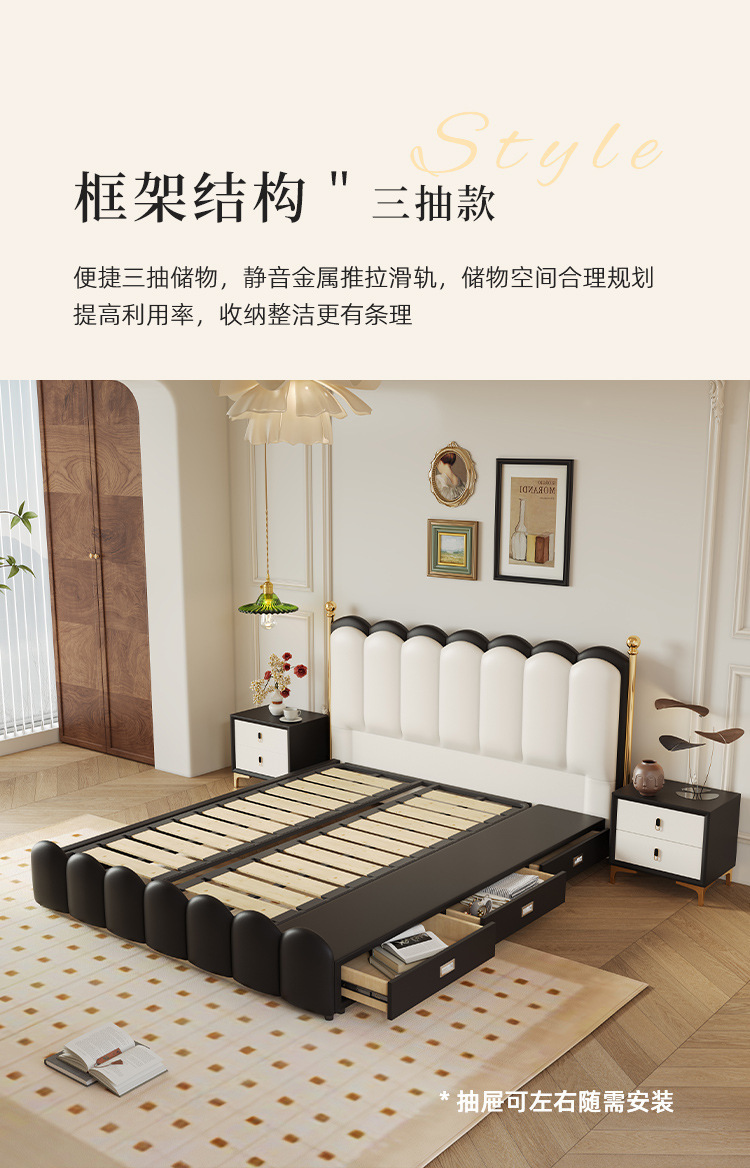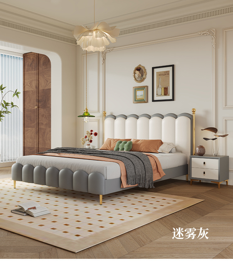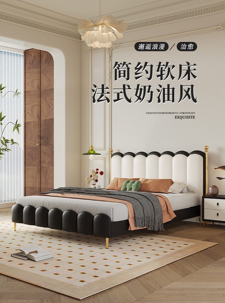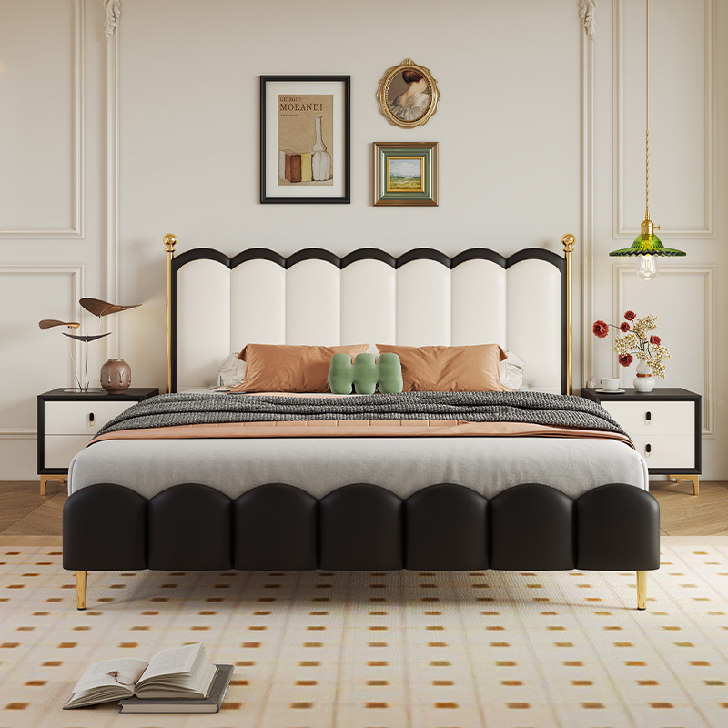 가죽 침대 이탈리아 빛 럭셔리 마스터 침실 더블 침대 현대 간단한 1.8 m 피아노 소프트 가방 침대 골동품 스타일 퀸 침대