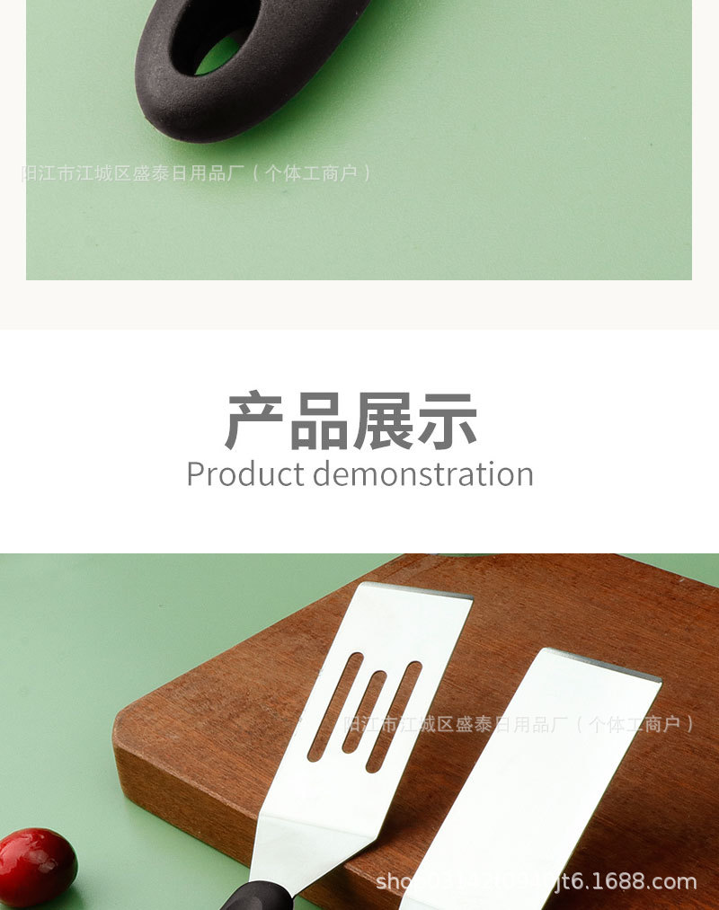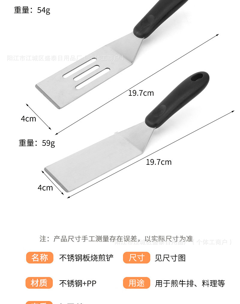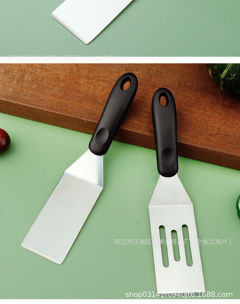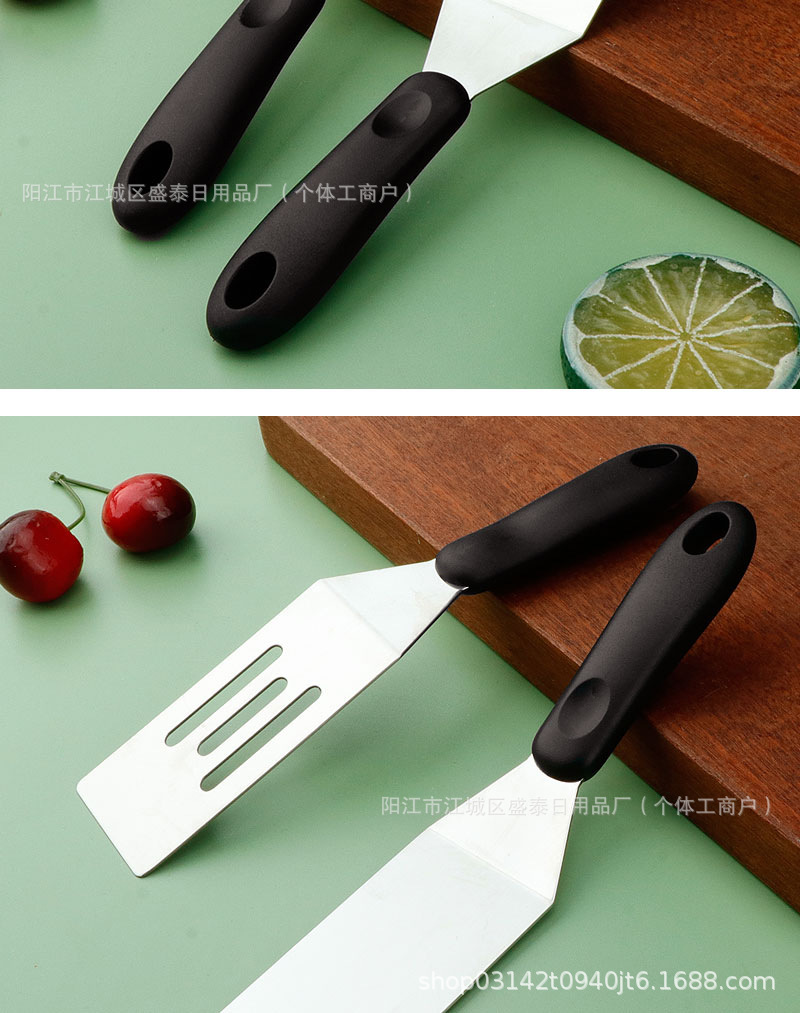 국경 간 스테인레스 스틸 Teppanyaki 삽 튀김 생선 삽 스테이크 삽 플라스틱 손잡이 작은 누출 삽 일본 요리 삽 주방 도구스토어 가기