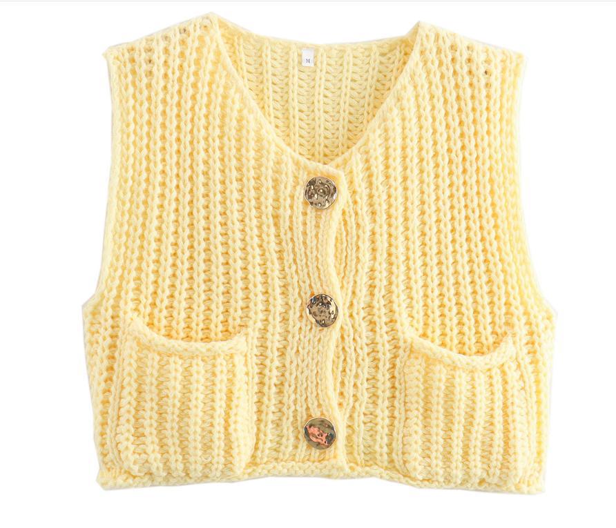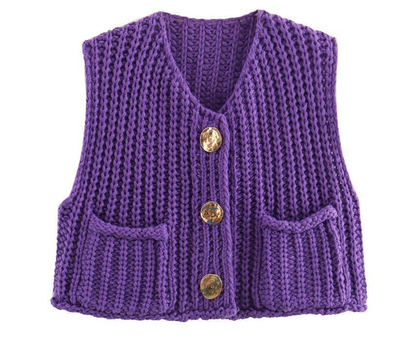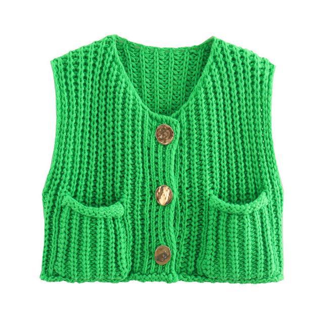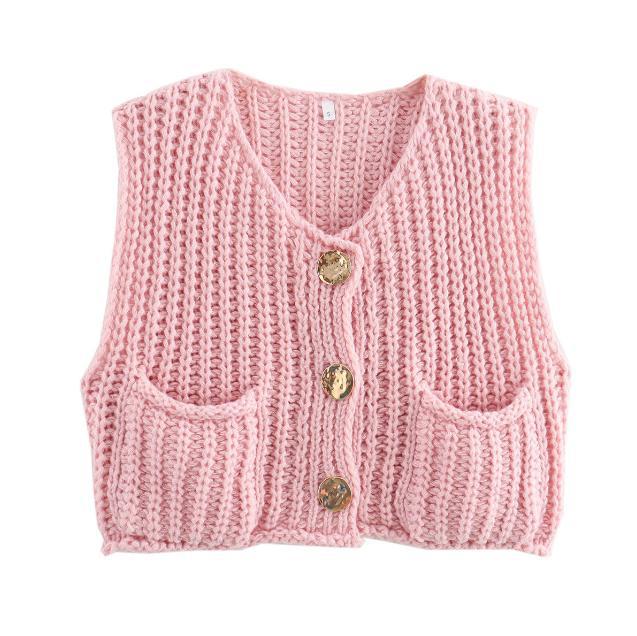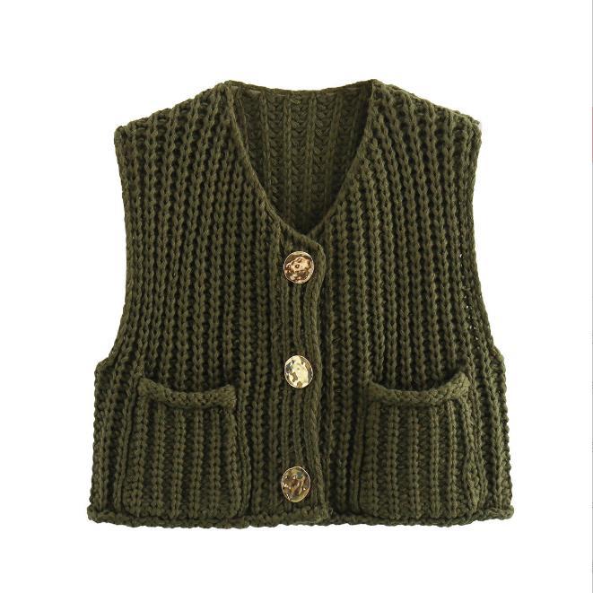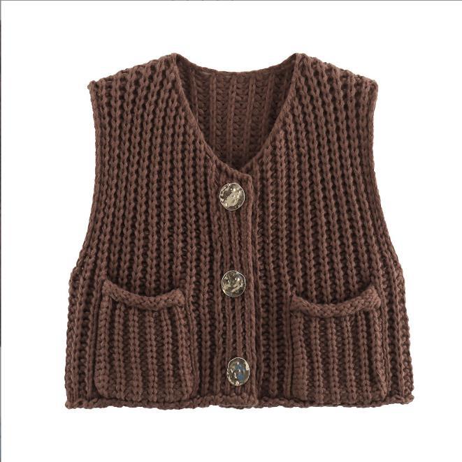 국경을 넘는 유럽과 미국 여성의 2024 가을 및 겨울 새로운 V-목 포켓 3 버튼 민소매 카디건 니트 조끼스토어 가기