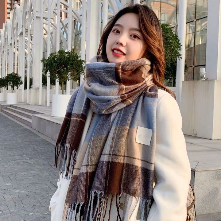 영국 스타일의 체크 무늬 스카프 여성 가을과 겨울의 한국 버전 조커 캐시미어 두꺼운 따뜻한 술 스카프 숄 도매스토어 가기