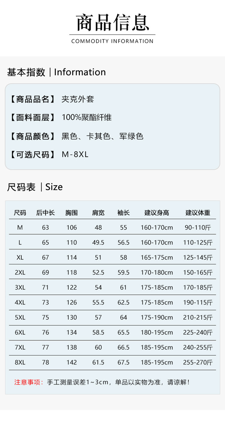 국경 간 플러스 사이즈 뚱뚱한 툴링 재킷 남자 수직 칼라 올 매치 캐주얼 스포츠 가을 및 겨울 뉴 M-8XL 재킷 코트스토어 가기