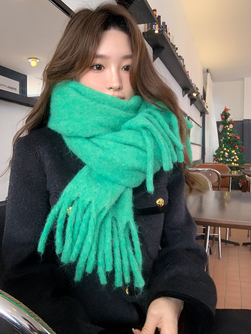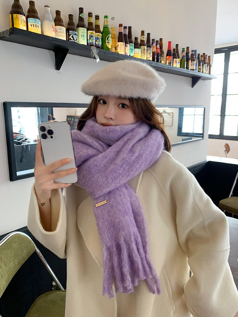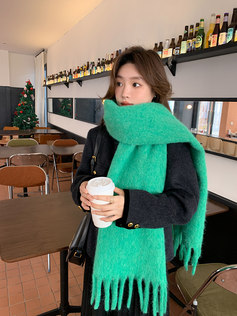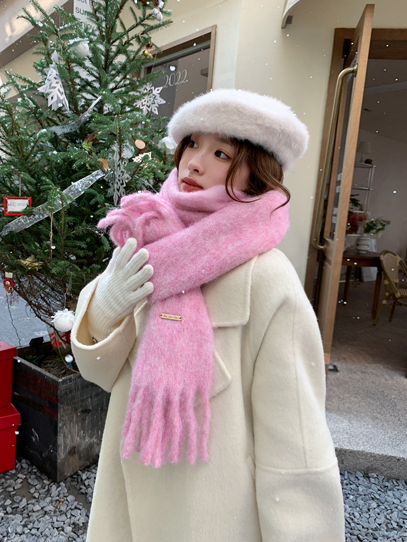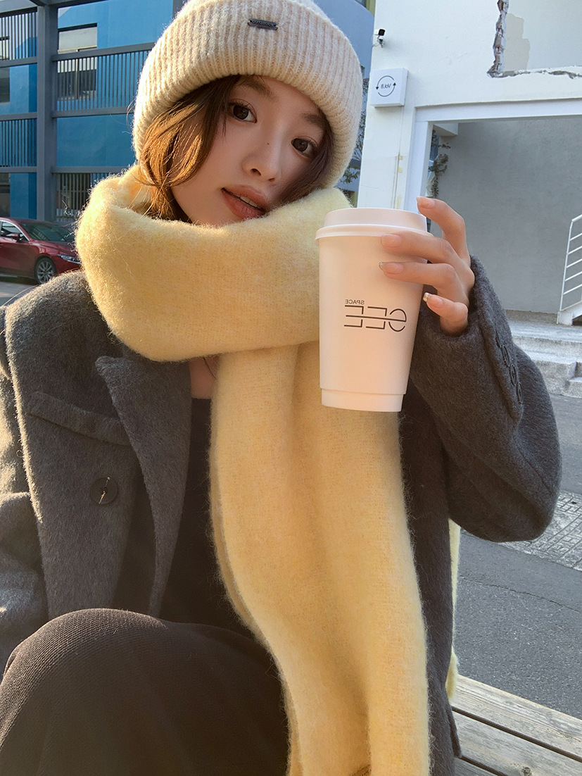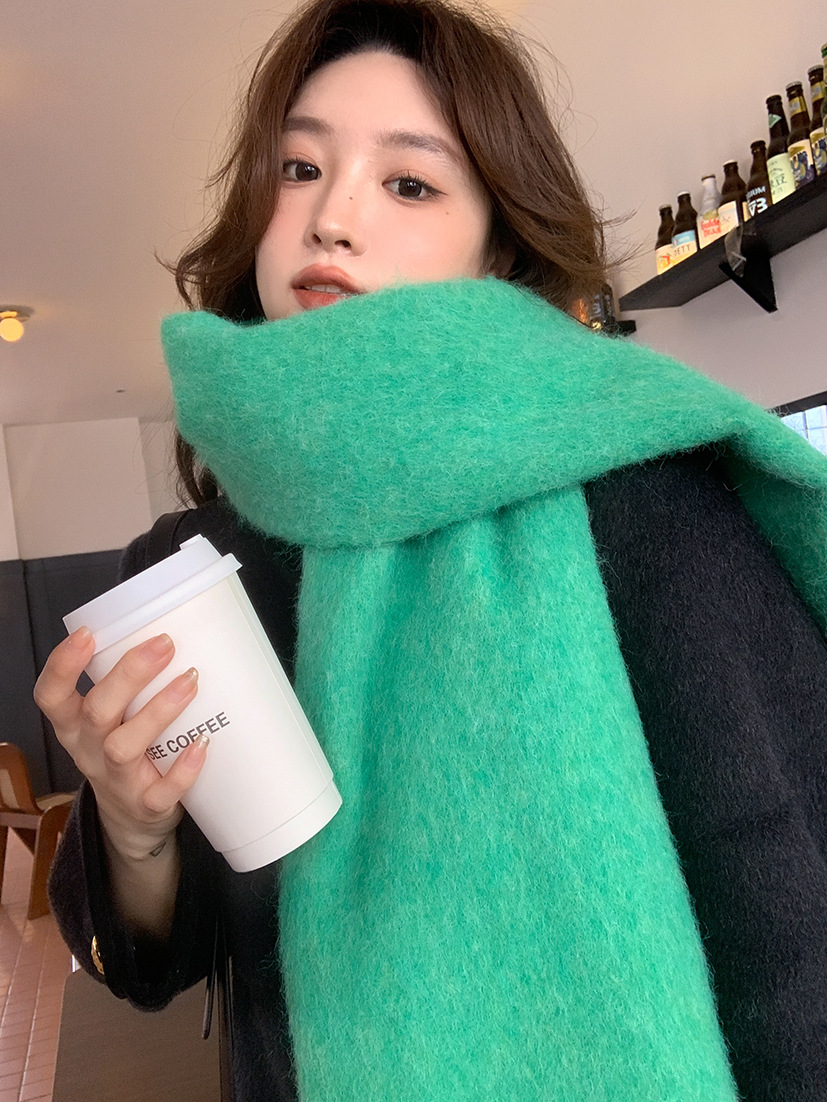 한국 스타일의 다재다능한 귀여운 사탕 컬러 스카프 겨울 두꺼운 따뜻한 목도리 모헤어 단색 커플 스카프스토어 가기
