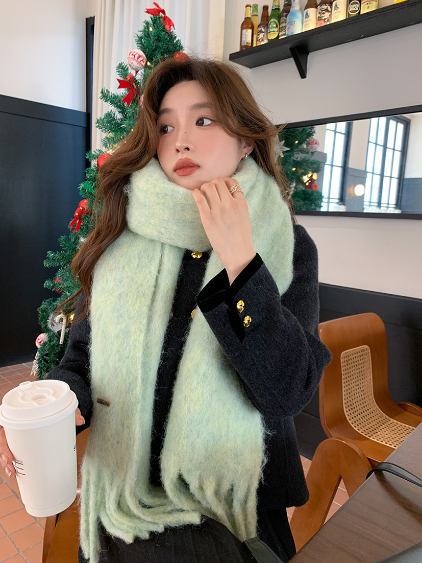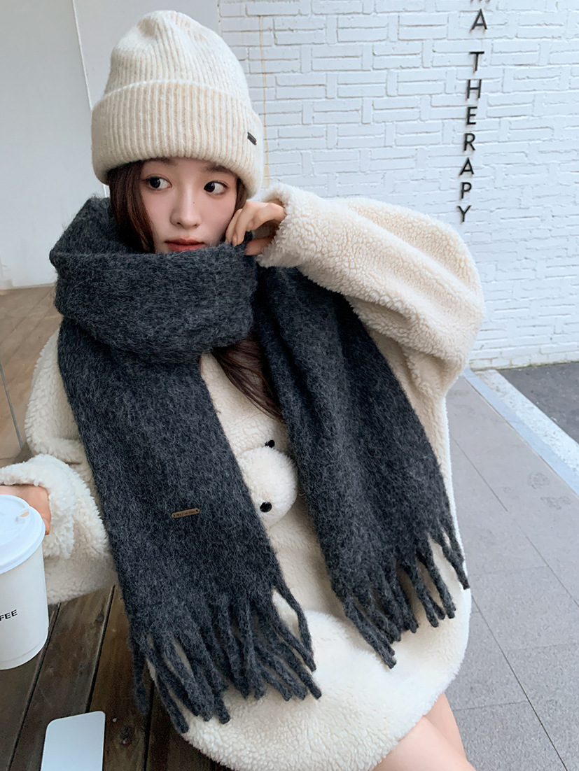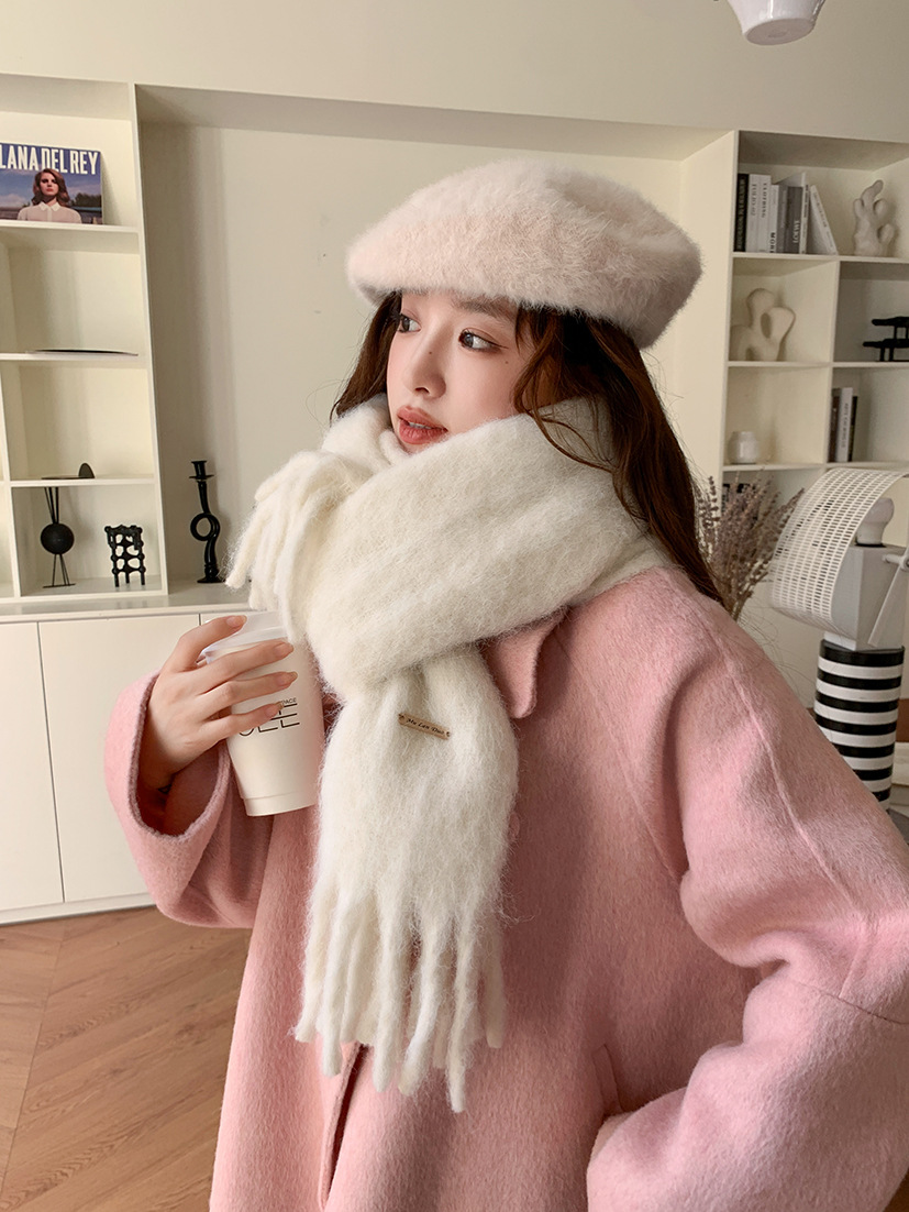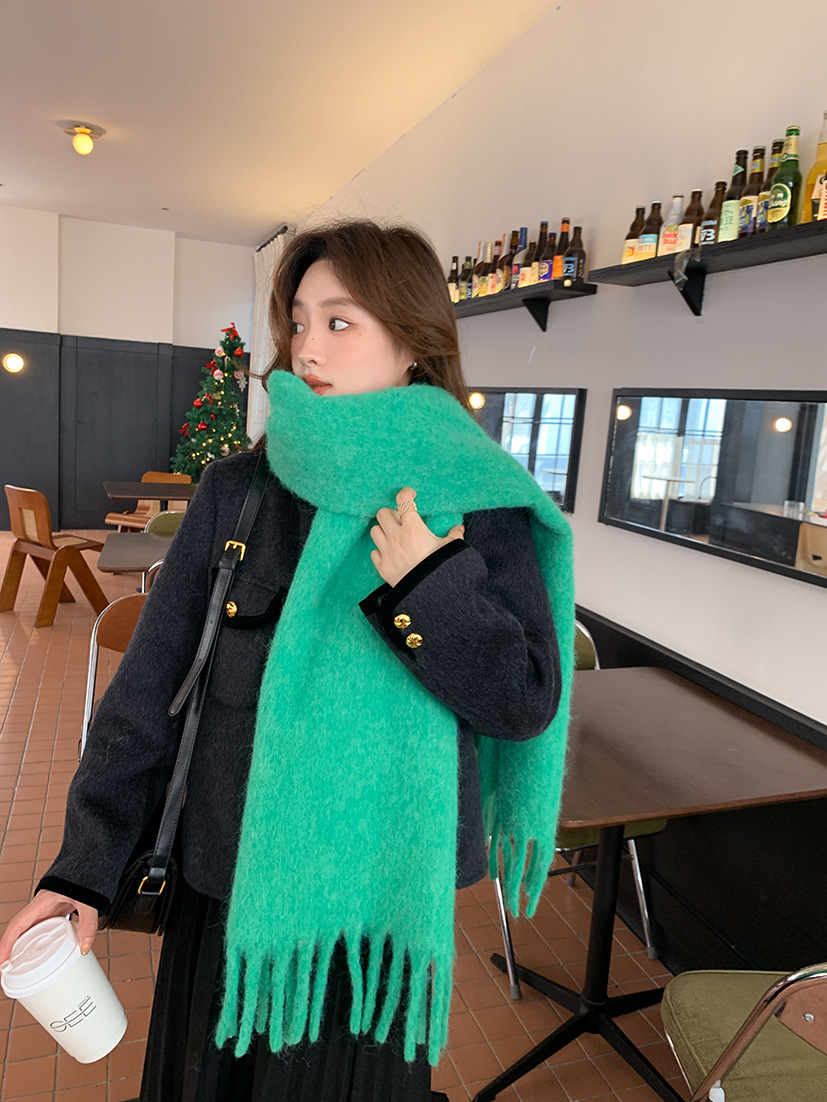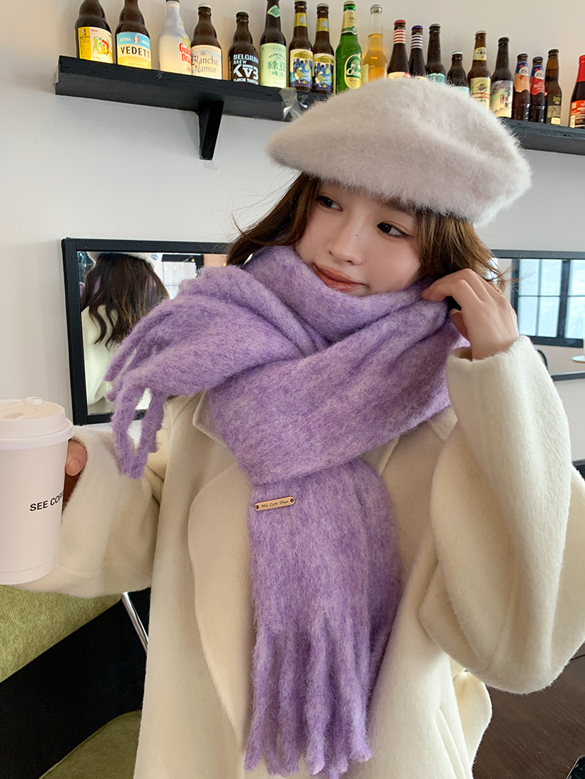 한국 스타일의 다재다능한 귀여운 사탕 컬러 스카프 겨울 두꺼운 따뜻한 목도리 모헤어 단색 커플 스카프스토어 가기