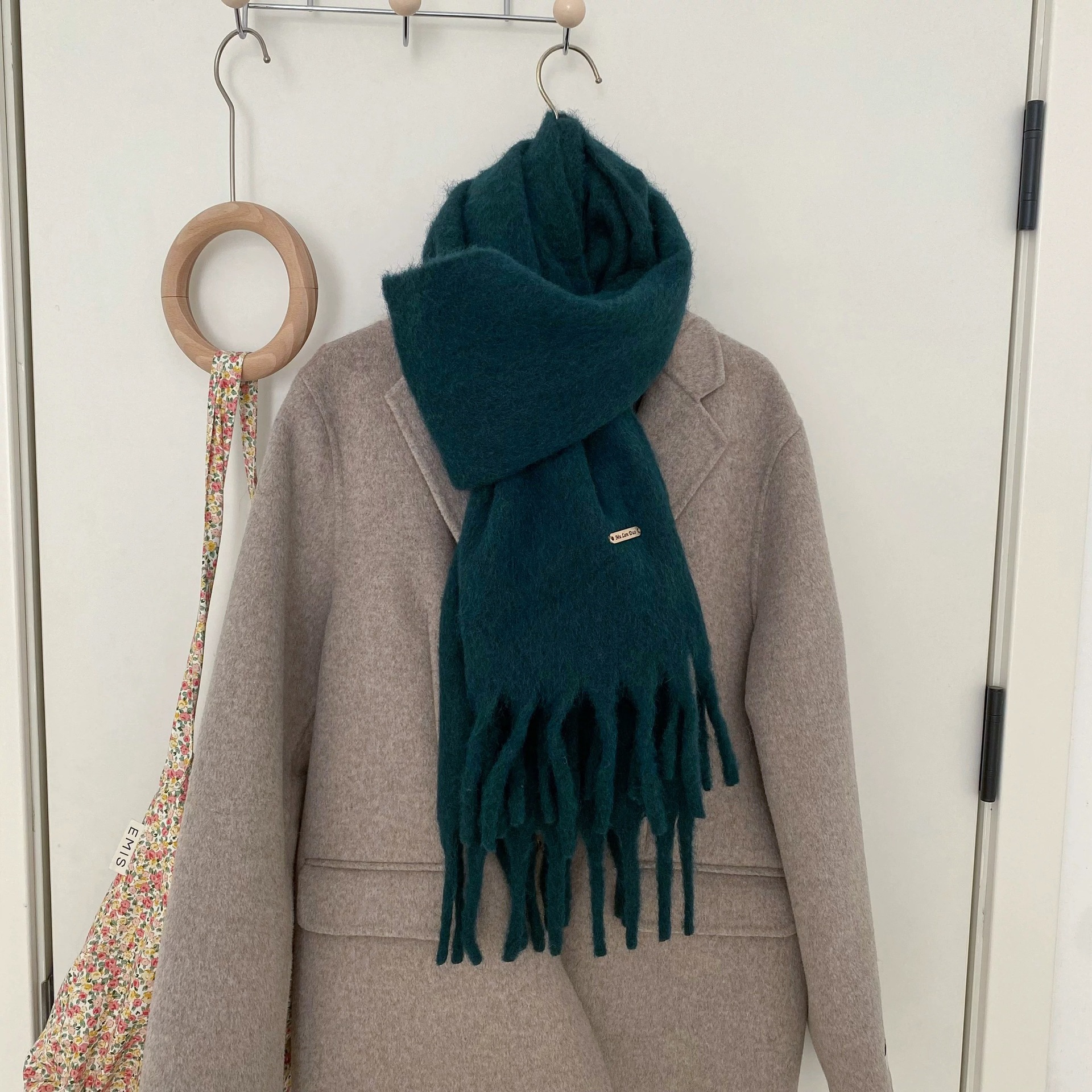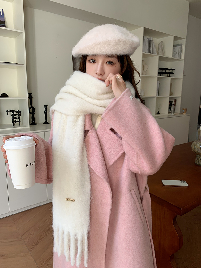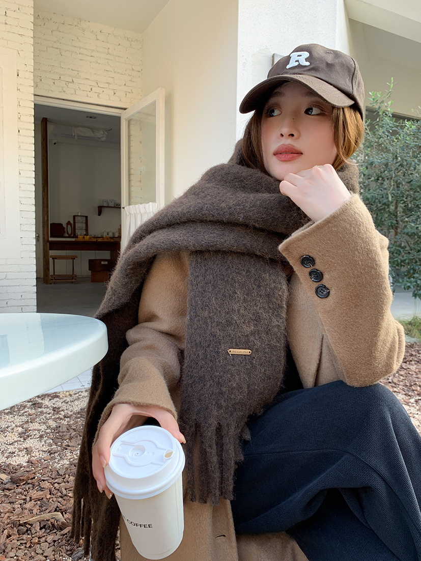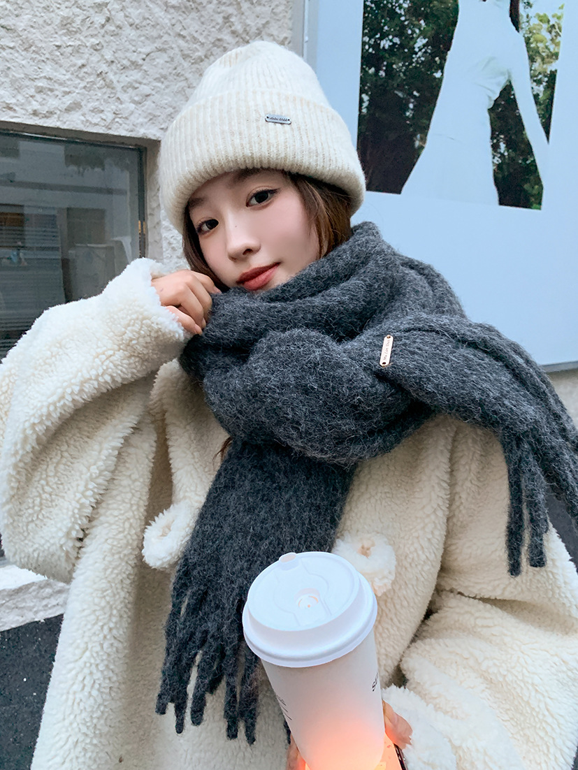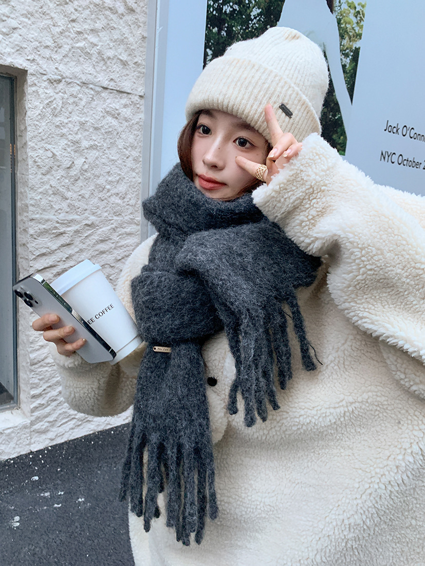 한국 스타일의 다재다능한 귀여운 사탕 컬러 스카프 겨울 두꺼운 따뜻한 목도리 모헤어 단색 커플 스카프스토어 가기