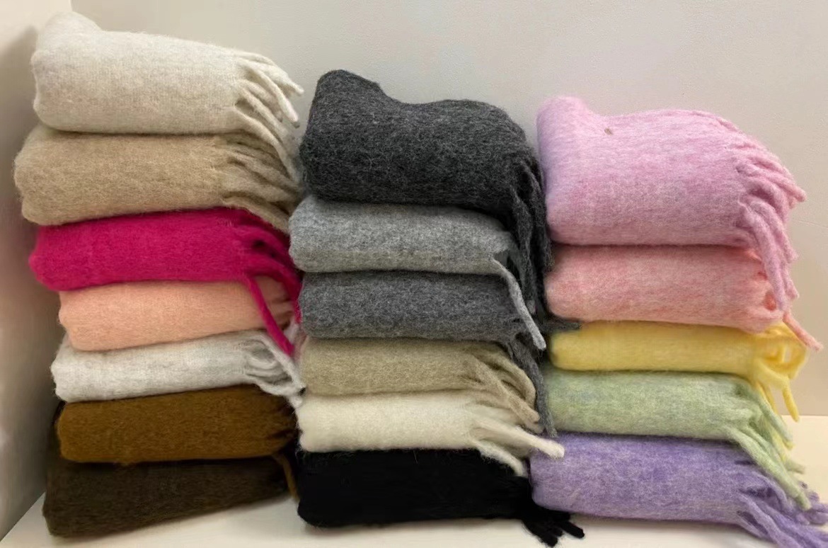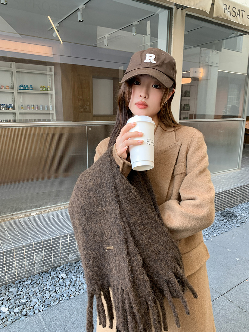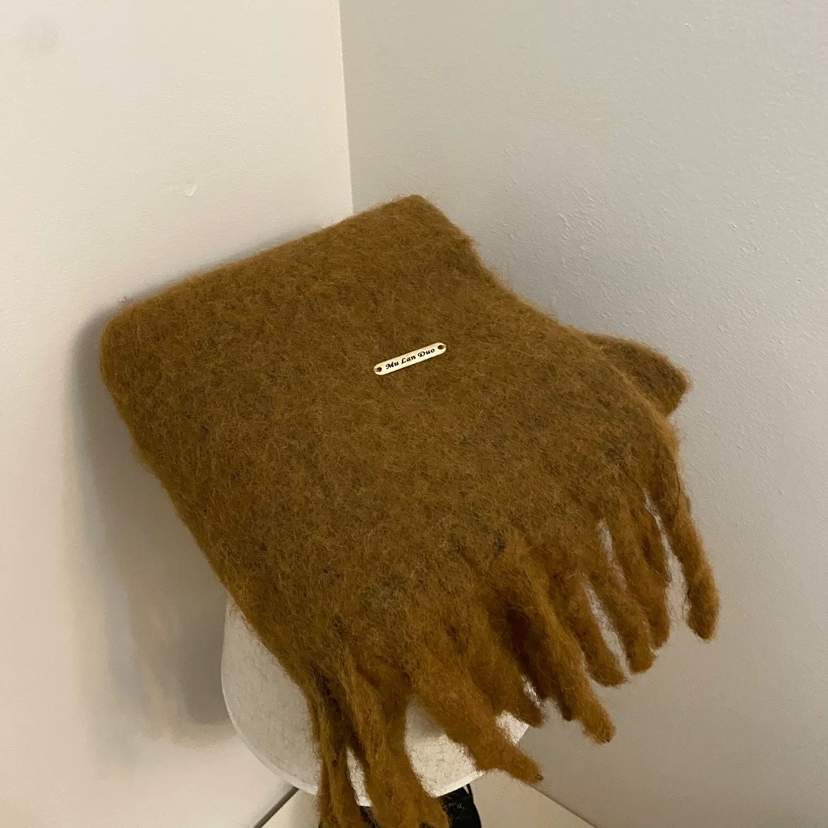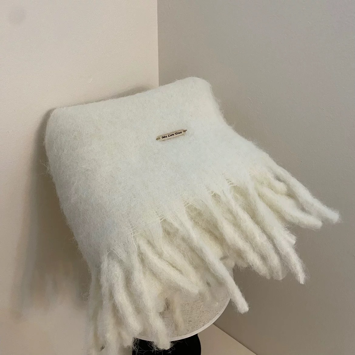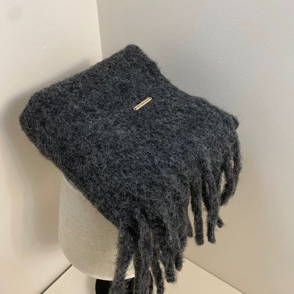 한국 스타일의 다재다능한 귀여운 사탕 컬러 스카프 겨울 두꺼운 따뜻한 목도리 모헤어 단색 커플 스카프스토어 가기