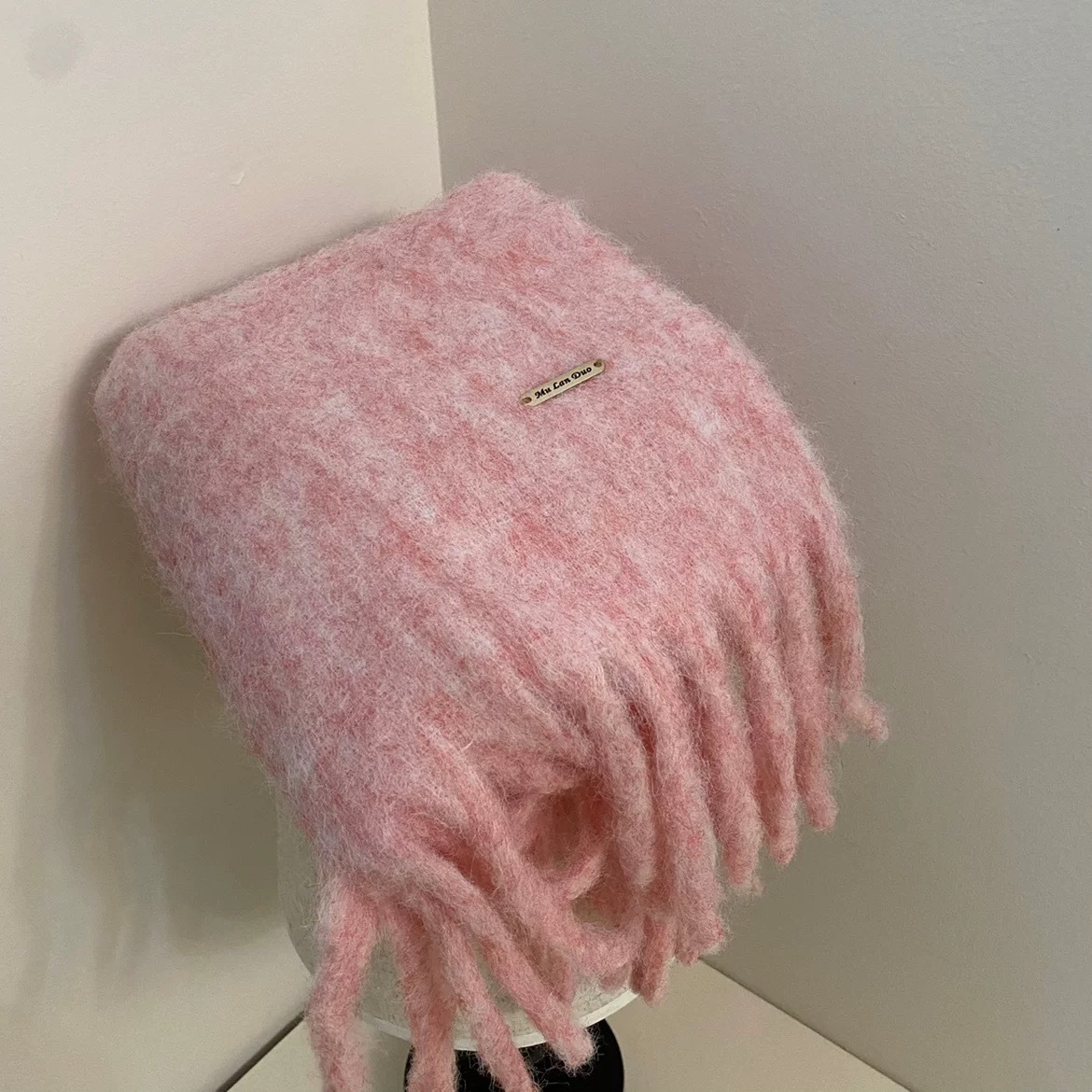 한국 스타일의 다재다능한 귀여운 사탕 컬러 스카프 겨울 두꺼운 따뜻한 목도리 모헤어 단색 커플 스카프