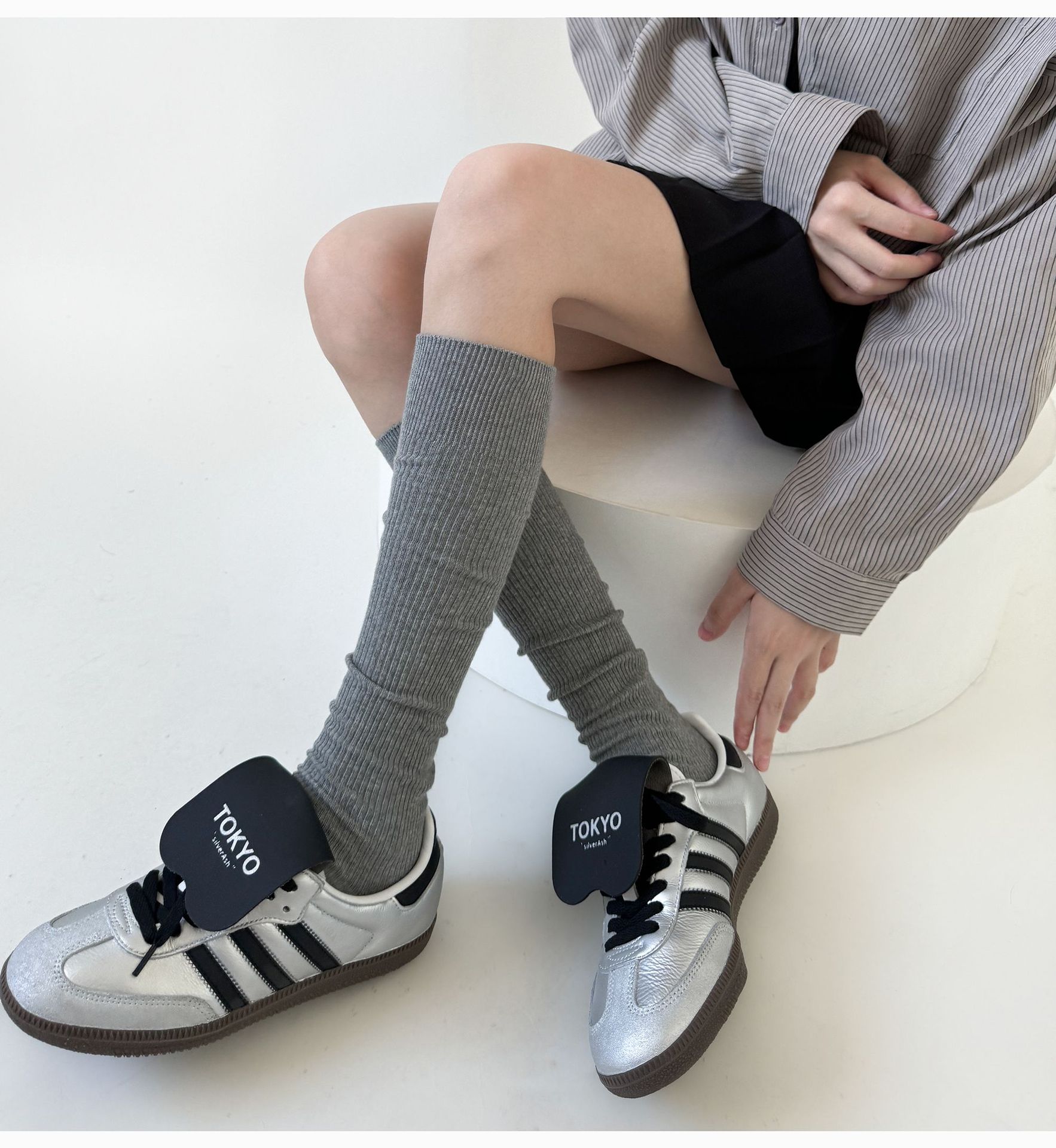 일본 JK 양말 우유 흰색 수직 줄무늬 송아지 양말 봄과 가을 슬리밍 압력 스택 양말 회색 면 얇은 중간 튜브 양말스토어 가기