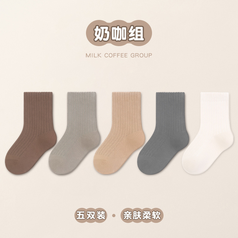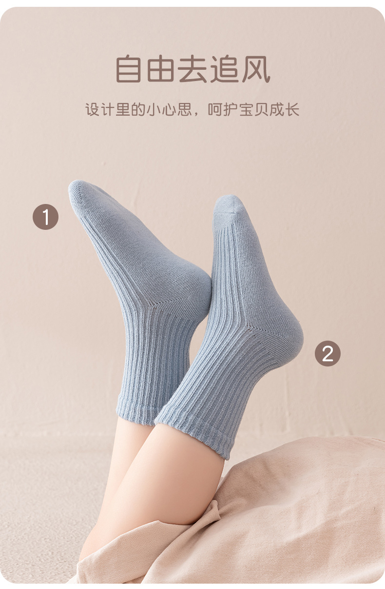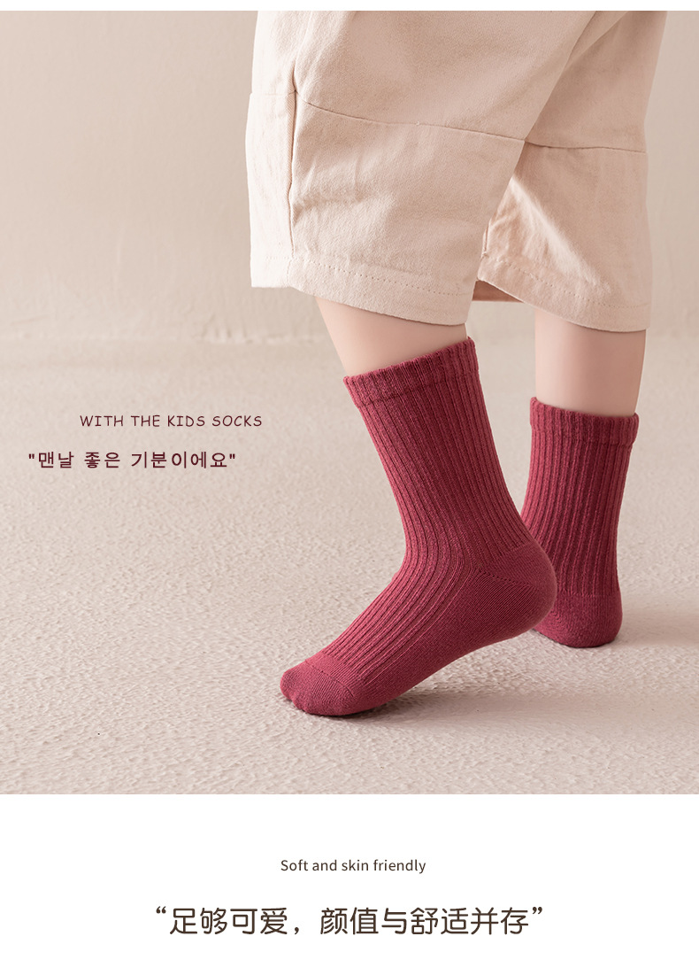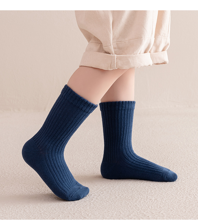 남학생과 여학생을 위한 다용도 빗질 면 스트라이프 양말, 소형, 중형 및 대형 아동용 양말 도매 단색 이중 바늘 양말 5켤레스토어 가기