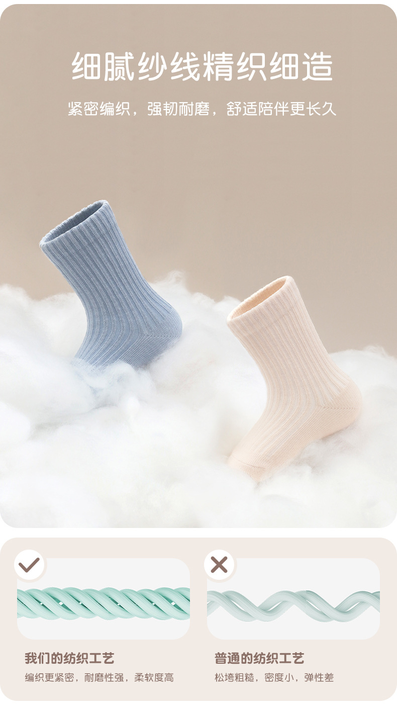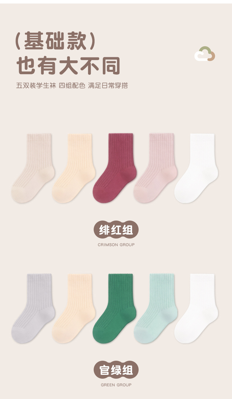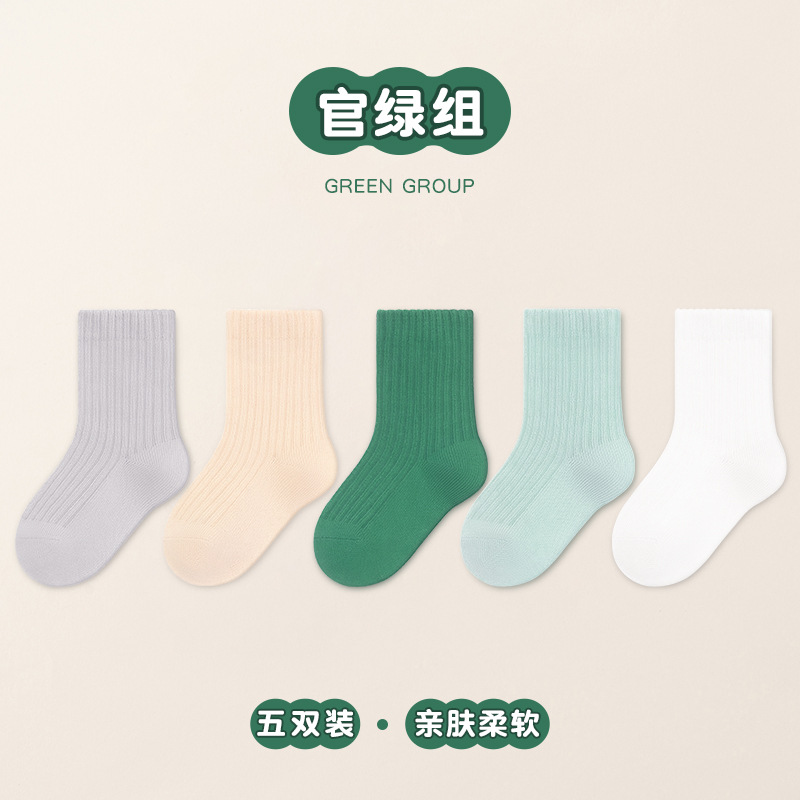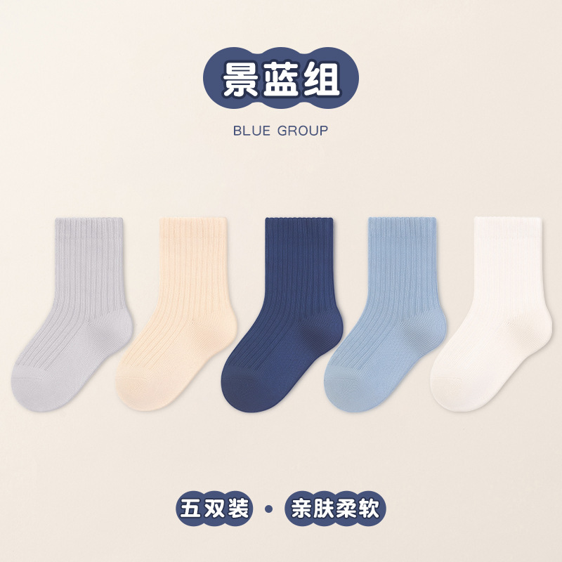 남학생과 여학생을 위한 다용도 빗질 면 스트라이프 양말, 소형, 중형 및 대형 아동용 양말 도매 단색 이중 바늘 양말 5켤레스토어 가기