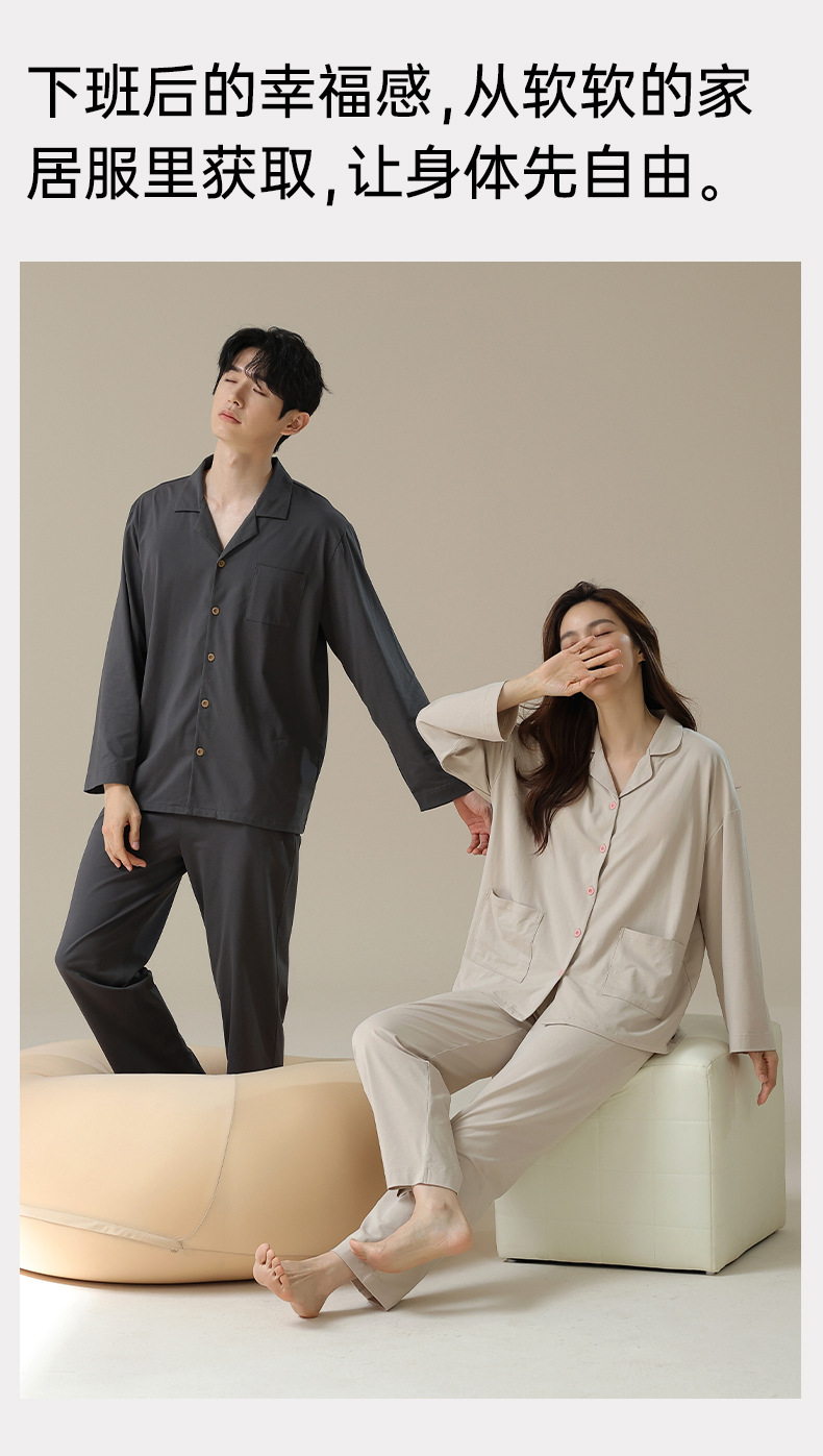 【항균 라지프 면】커플 잠옷 순면 긴팔 가슴 패드 여성 홈웨어 세트 남성용 커플 스타일스토어 가기