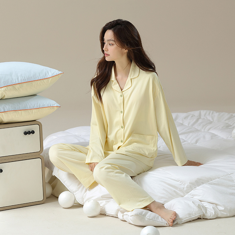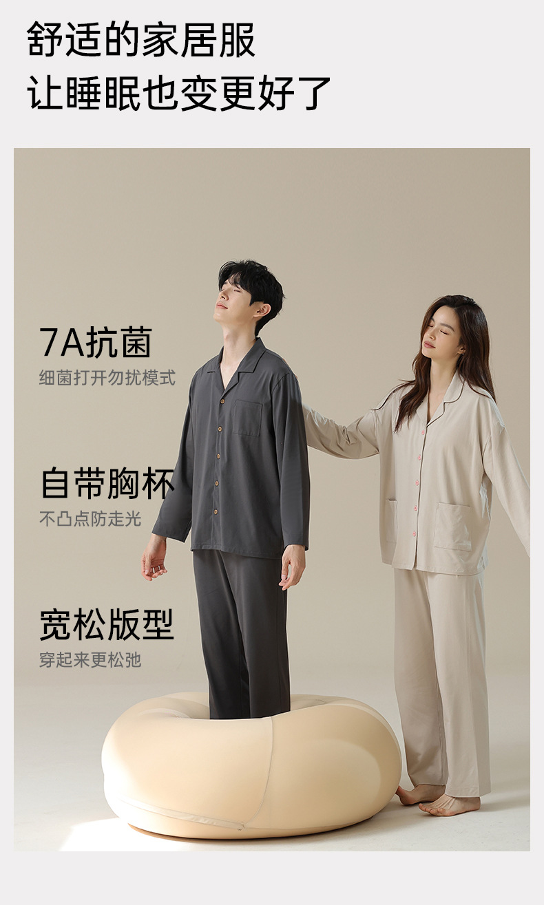 【항균 라지프 면】커플 잠옷 순면 긴팔 가슴 패드 여성 홈웨어 세트 남성용 커플 스타일