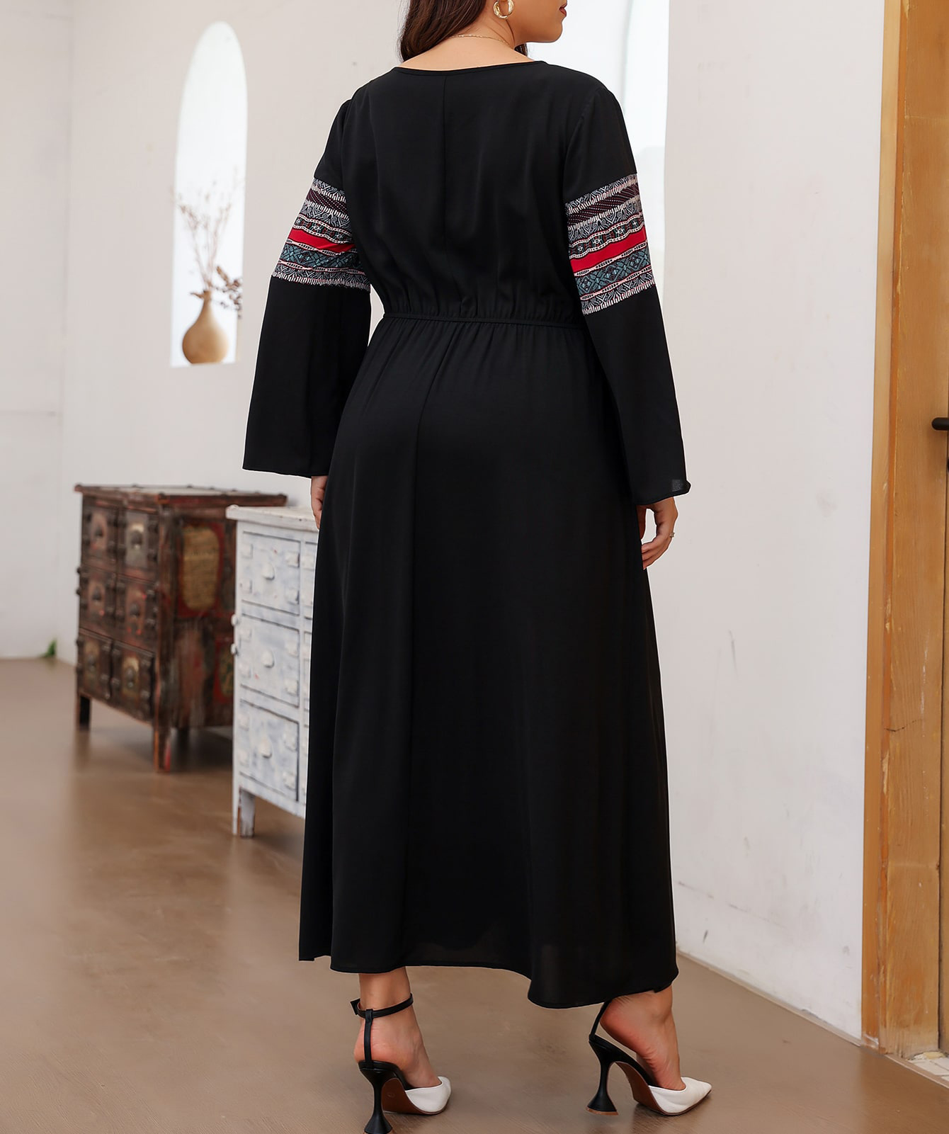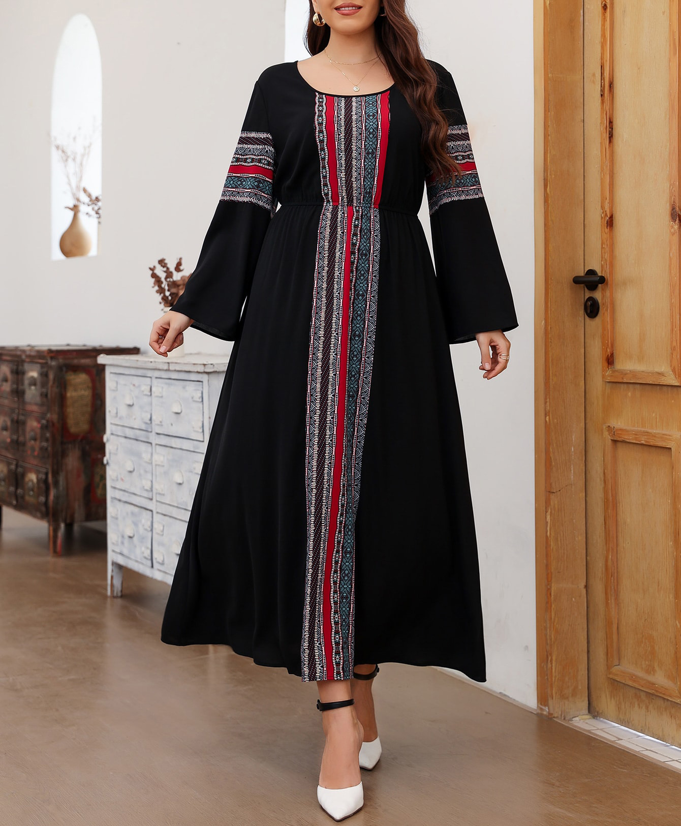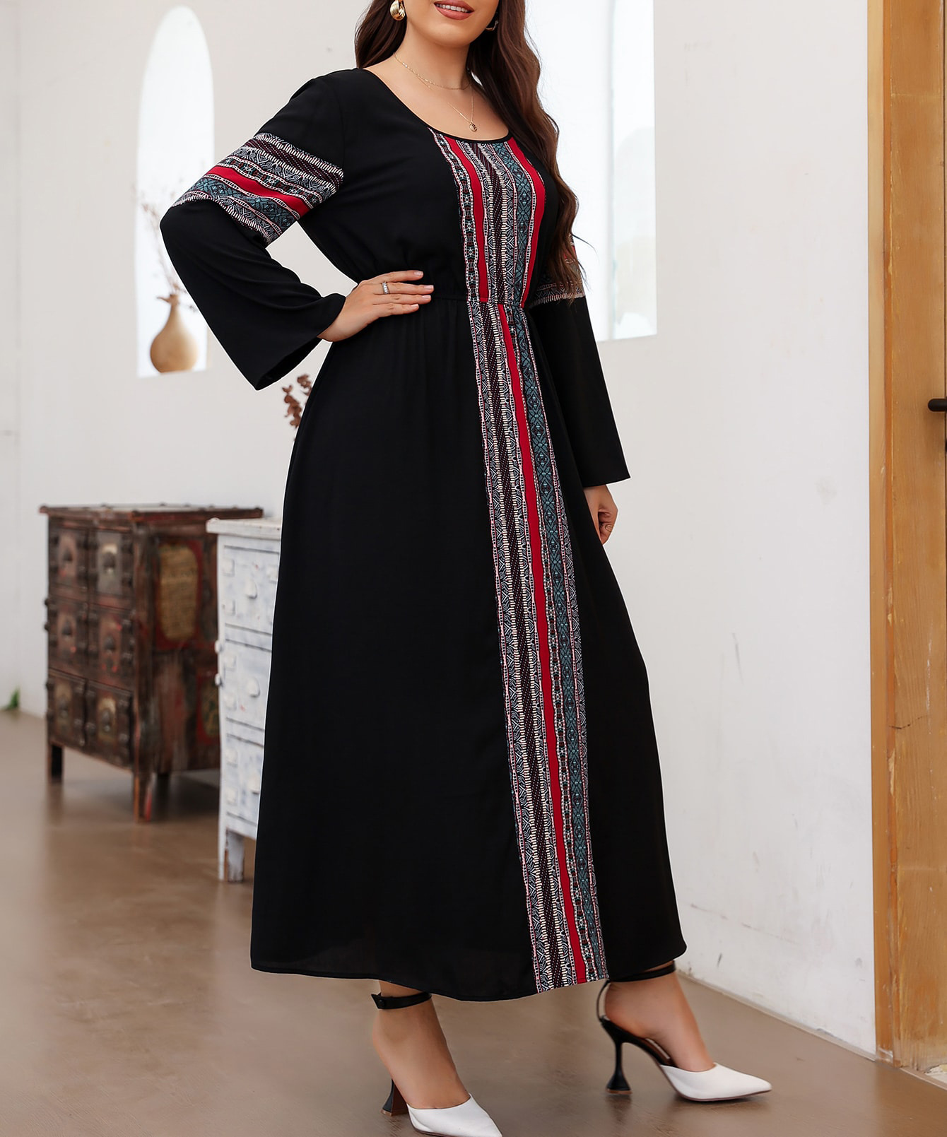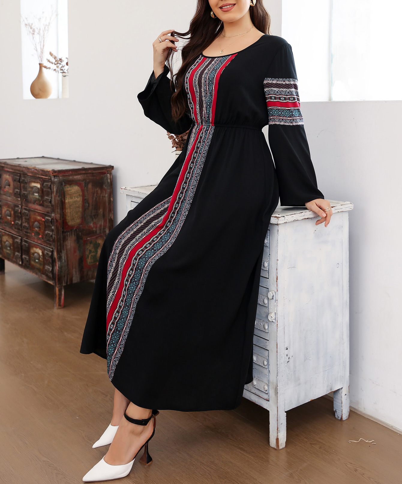 2024 봄과 가을 하이 엔드 슈퍼 잘 생긴 레트로 민족 스타일 서양식 연령 감소 슬리밍 스티칭 원피스스토어 가기