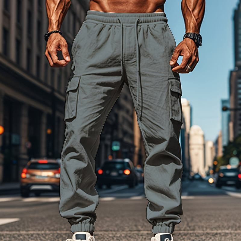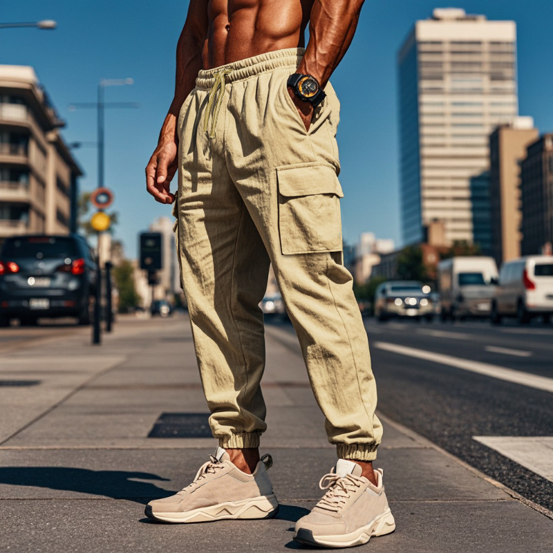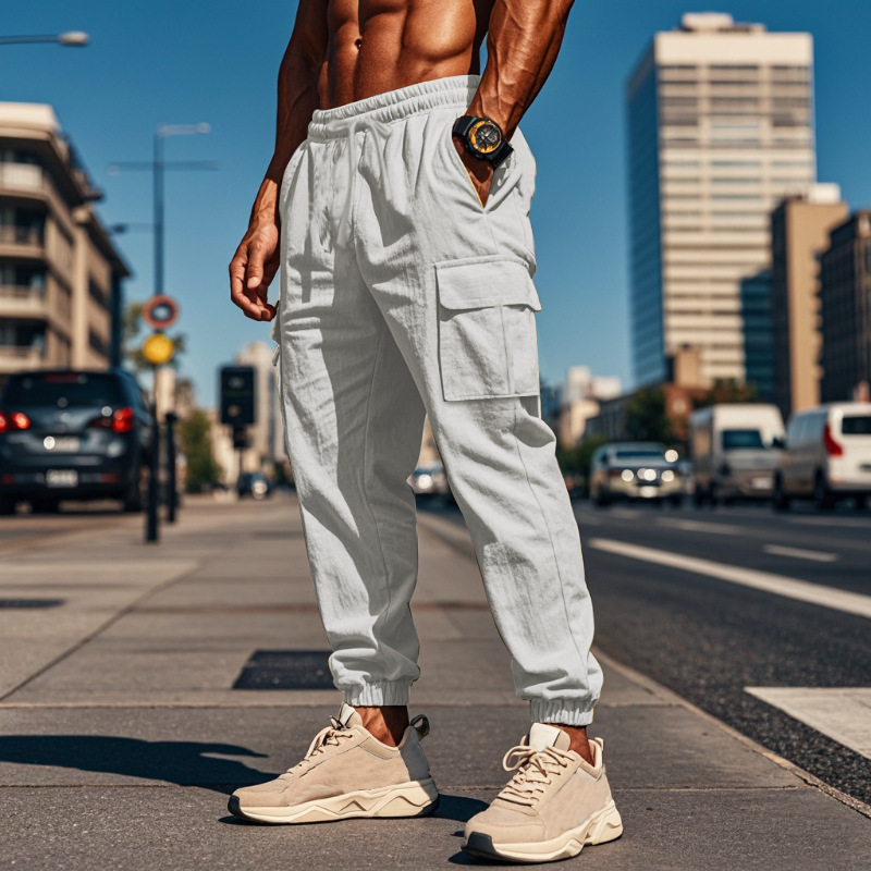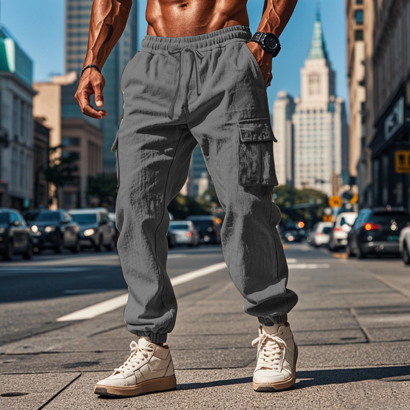 아마존 temu 가을과 겨울 새로운 남성 캐주얼 멀티 포켓 바지 폐쇄 플래켓 테더 코튼 리넨 스트레이트 바지