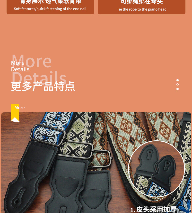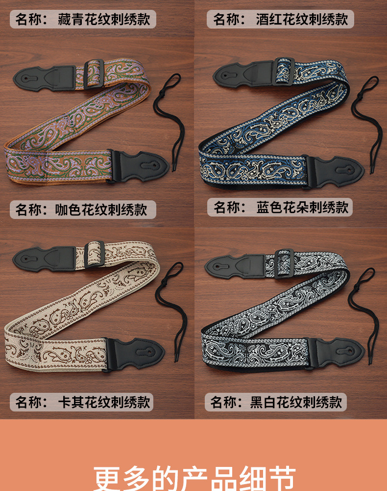 일렉트릭 기타 스트랩, 포크/클래식 기타용, 텅스텐 스틸 자수, 픽 삽입 가능, 넓은 어깨끈, 기타 스트랩 도매