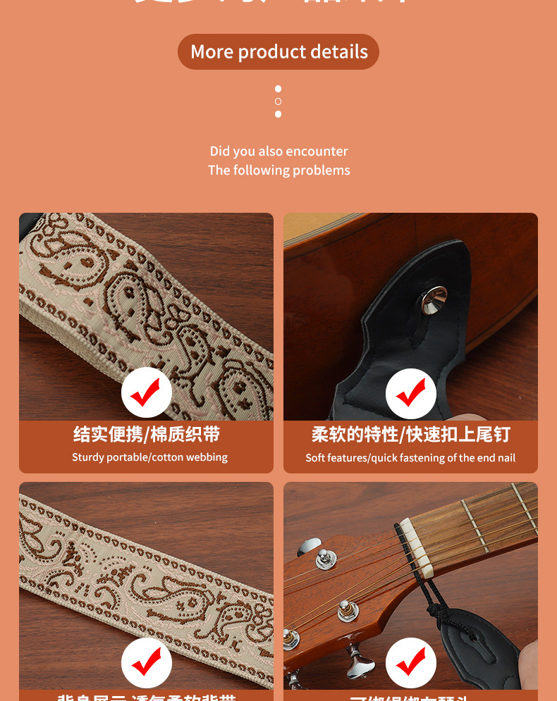 일렉트릭 기타 스트랩, 포크/클래식 기타용, 텅스텐 스틸 자수, 픽 삽입 가능, 넓은 어깨끈, 기타 스트랩 도매스토어 가기