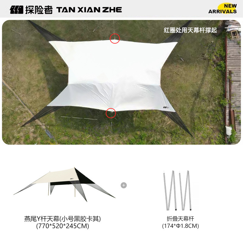 • Y자형 타프 측면 폴대 효과 이미지 (샘플 전시용이며 발송되지 않습니다. 해당 항목은 구매하지 마십시오.)
