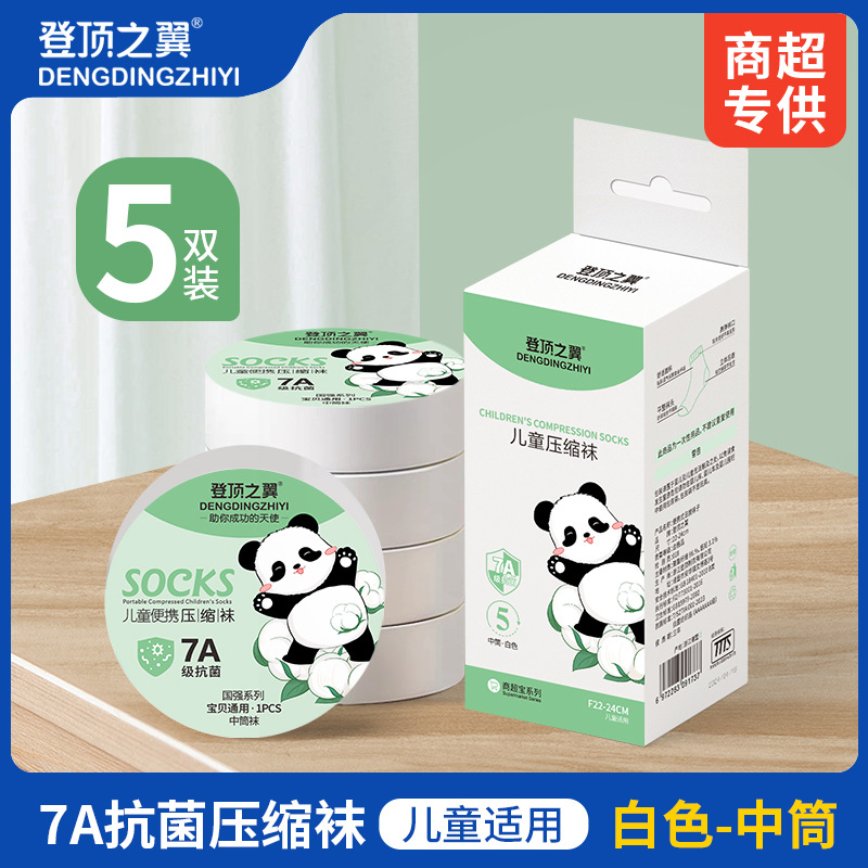 • 7A 항균 양말(압축 한 켤레) - 어린이용 흰색 중간 튜브